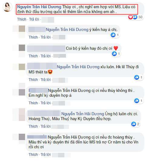 Tuy vậy, nhiều fan vẫn cho rằng Hoàng Thùy đã hoàn thành giấc mơ dự thi Miss Universe và không nên mất thời gian đầu tư cho một đấu trường nhan sắc khác.
