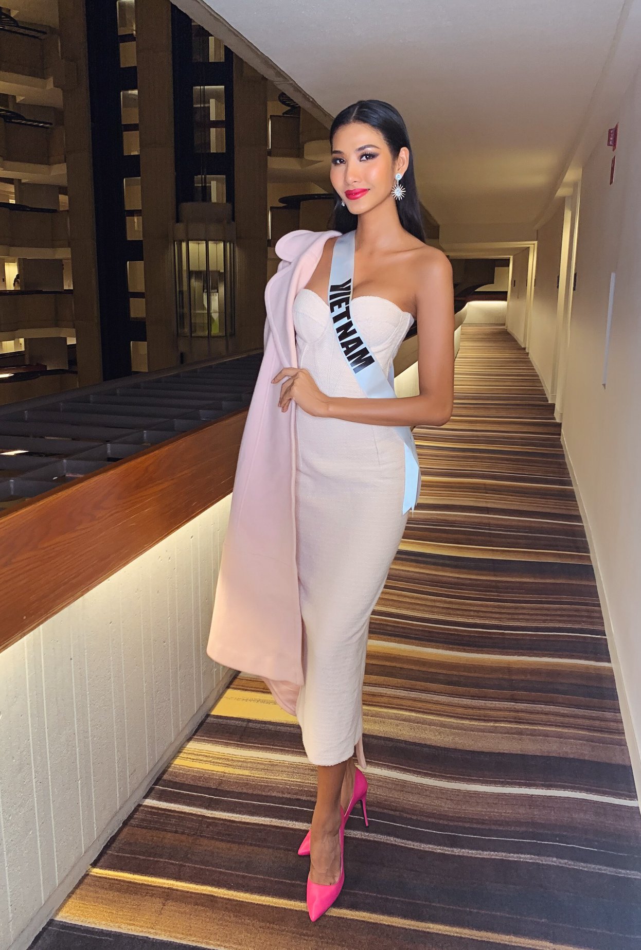Hoàng Thùy và Zozibi ở cạnh phòng với nhau khi tham gia Miss Universe 2019 nên hai cô nàng khá thân thiết và giúp đỡ nhau trong việc chụp ảnh.