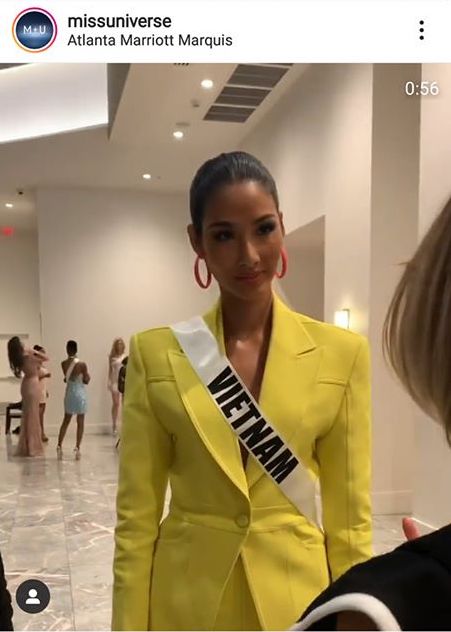 Tiếp tục thể hiện phong độ chiến đấu hừng hực tại Miss Universe 2019, Hoàng Thùy bước vào vòng phỏng vấn kín của cuộc thi trong tâm thế vô cùng tự tin và quyết tâm giành được tấm vé in-top trong đêm Chung kết. Đối diện với ban giám khảo, đại diện Việt Nam lựa chọn bộ vest vàng nổi bật vừa thanh lịch vừa mạnh mẽ để thể hiện sự bản lĩnh của mình.
