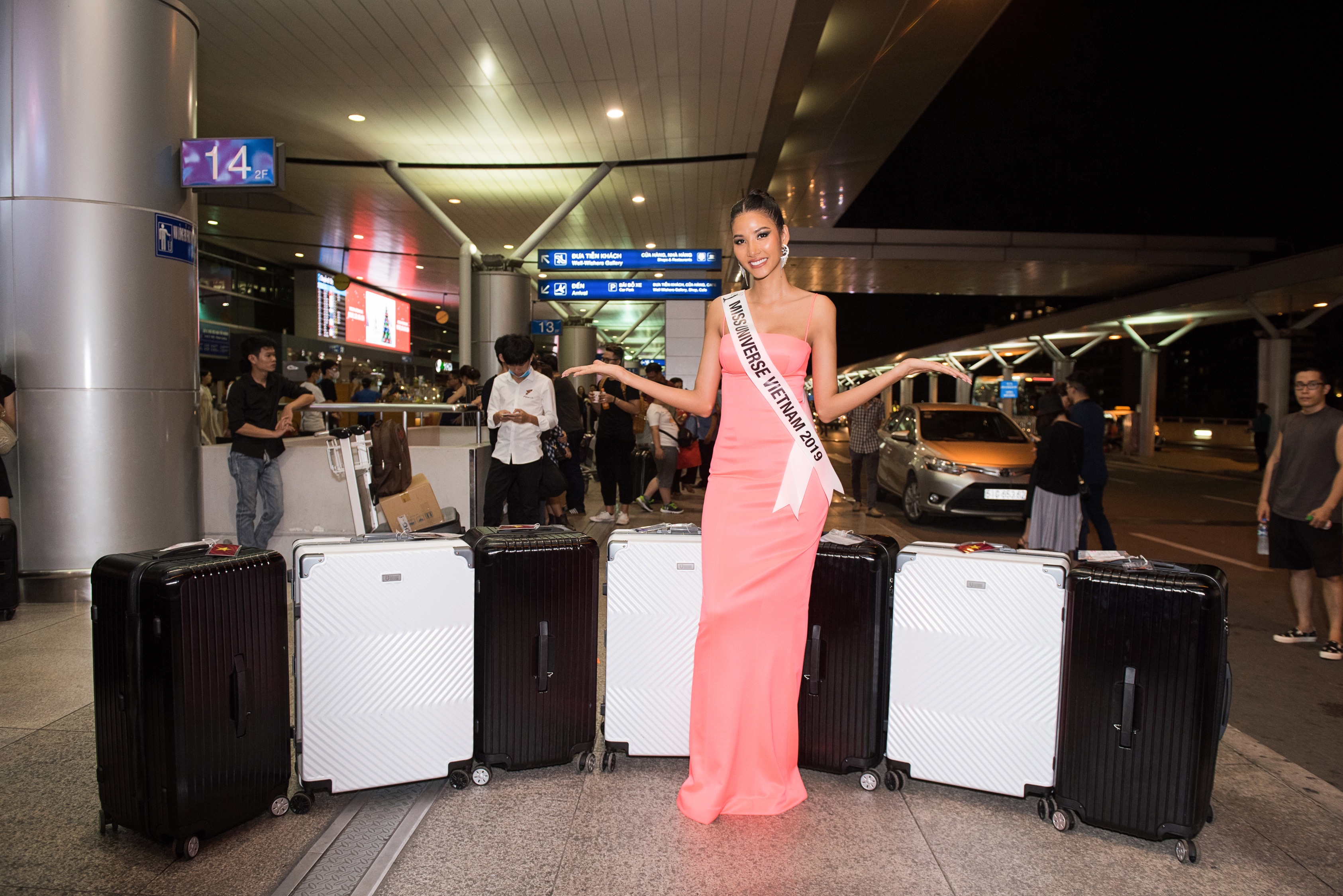 - Thùy mang theo 9 vali trang phục và phụ kiện, 3 vali National Costume, tổng cộng là 12 vali cho cuộc thi lần này. Mình chấp nhận đóng 2000 đô la vì hành lý quá tải. Chắc số tiền này sẽ trừ vào tiền thưởng nếu Thùy đậu Miss Universe 2019 quá.