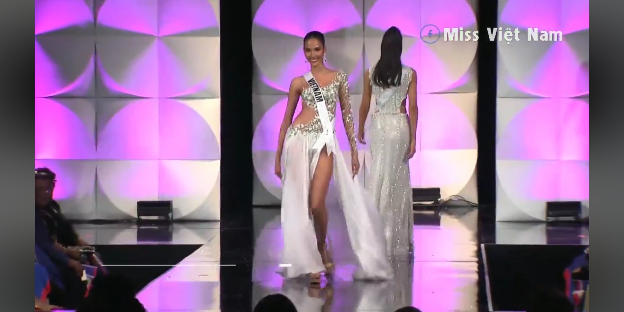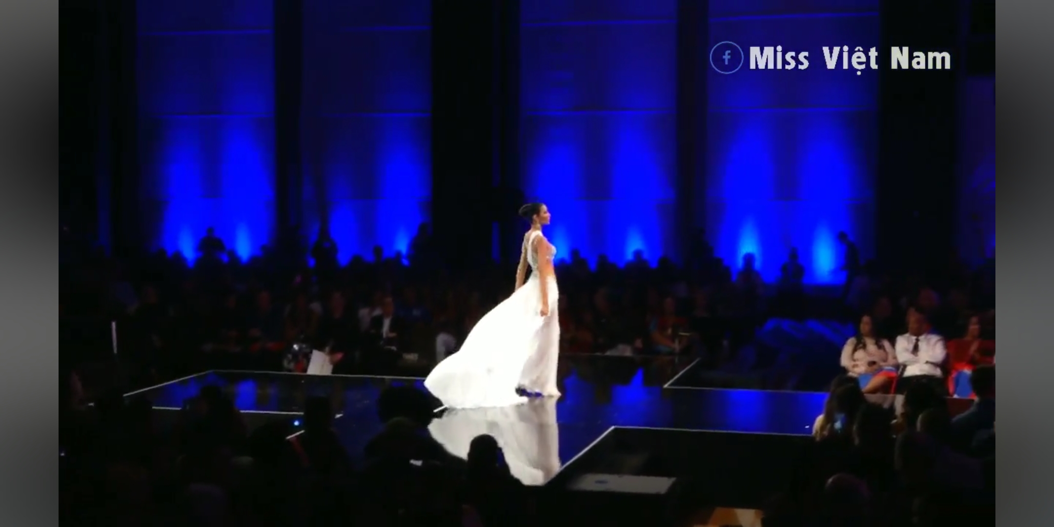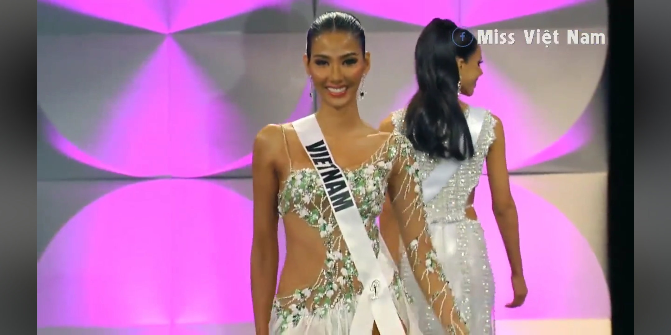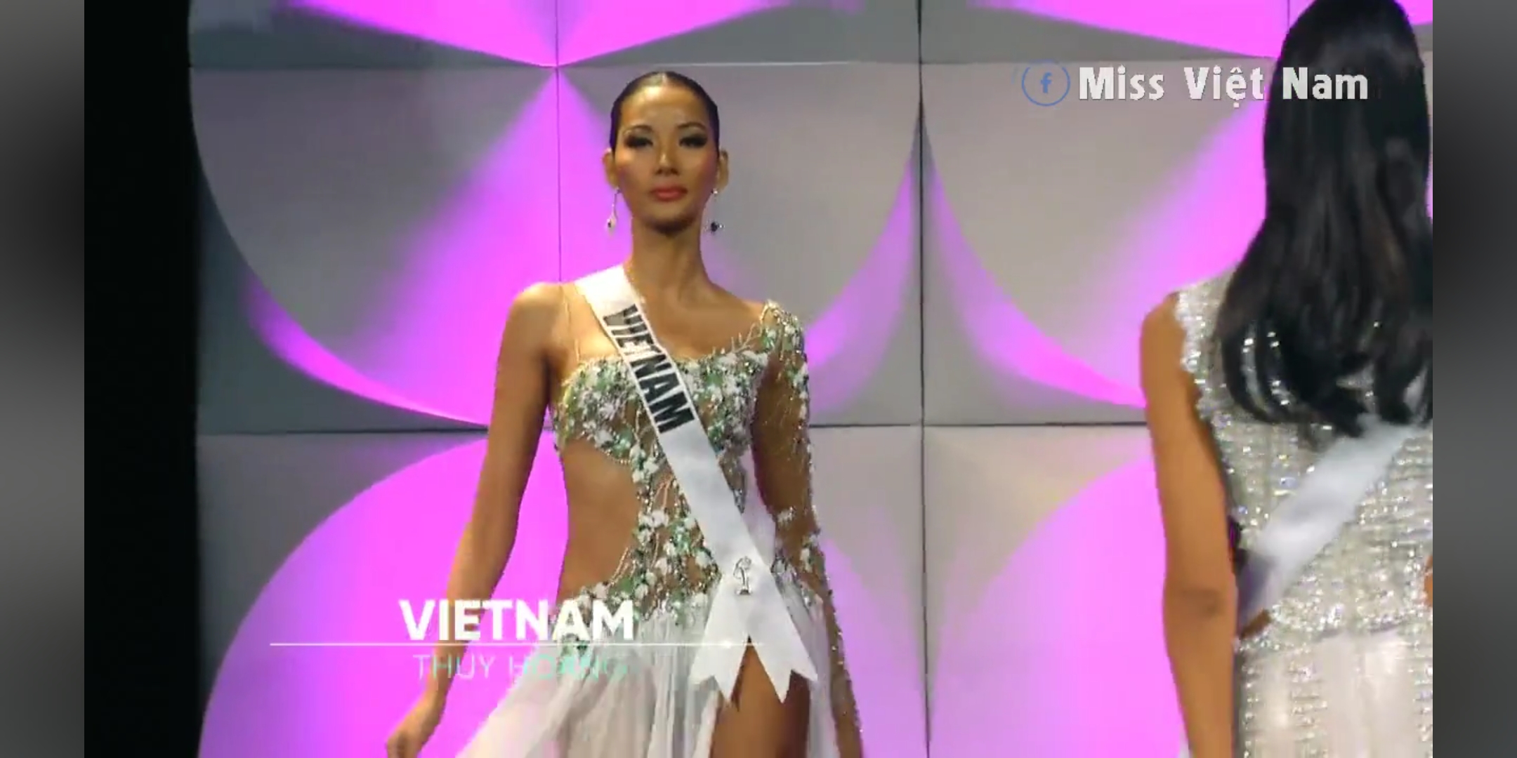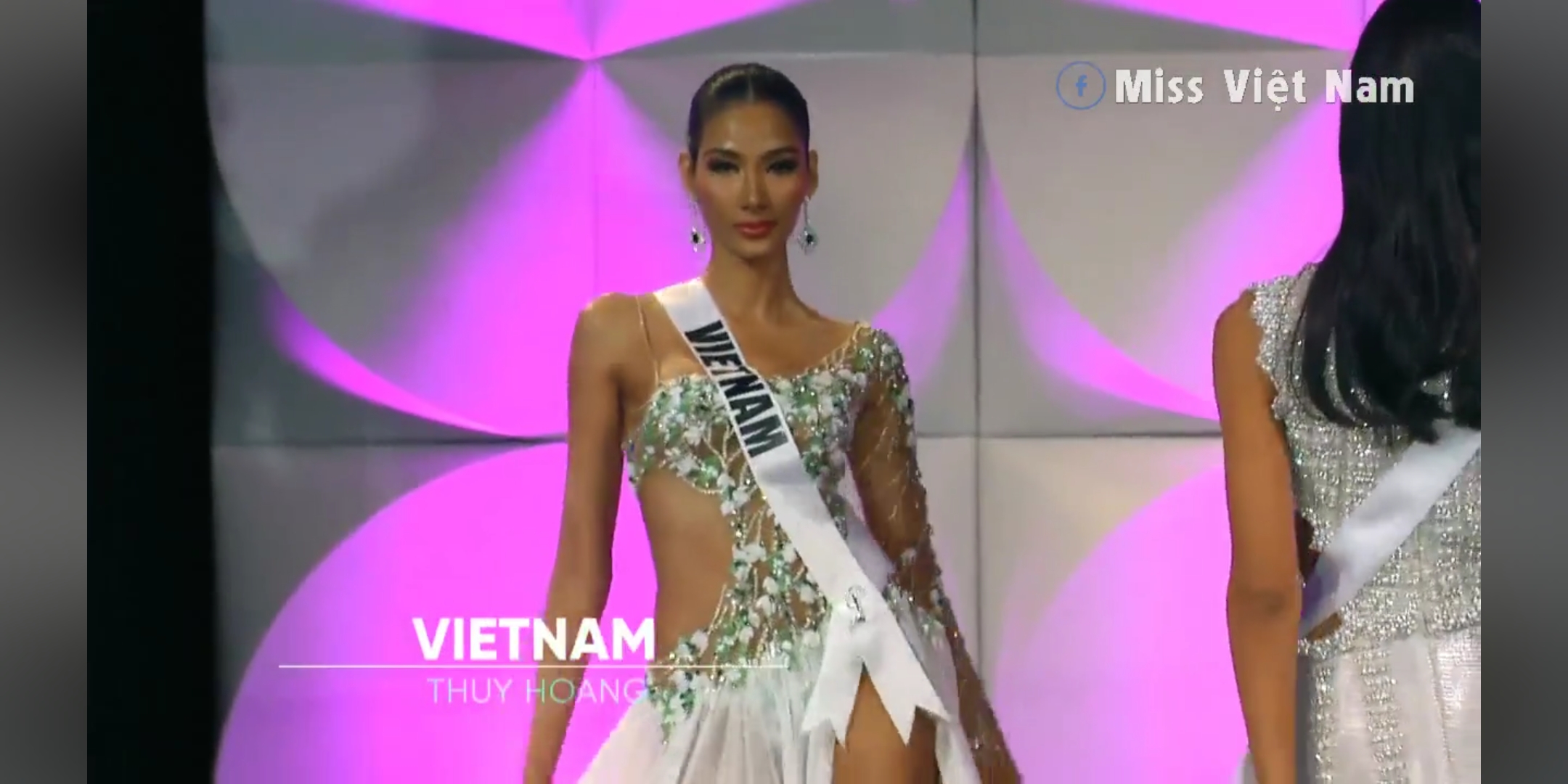 Không khiến người hâm mộ thất vọng, thiết kế trang phục dạ hội giúp Hoàng Thùy tôn lên những đường nét quyến rũ của cơ thể. Thưởng thức màn trình diễn của người đẹp Thanh Hóa, khán giả quốc tế chỉ có thể thốt lên rằng đại diện Việt Nam quá đẳng cấp và thời thượng.