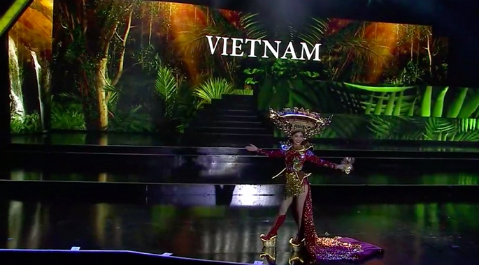 Phần thi của Kiều Loan được người ủng hộ nhiệt tình nhưng hiệu ứng của bộ trang phục không được như mong đợi. Á hậu định đợi gọi tên quốc gia xong sẽ bật đèn nhưng không ngờ đèn sáng sớm hơn nên hiệu ứng không được đẹp mắt.