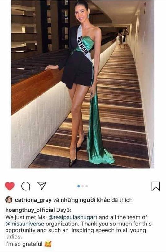 Đương kim Hoa hậu Hoàn vũ Catriona Gray bày tỏ sự yêu thích cho hình ảnh mới nhất của đại diện Việt Nam tại cuộc thi.