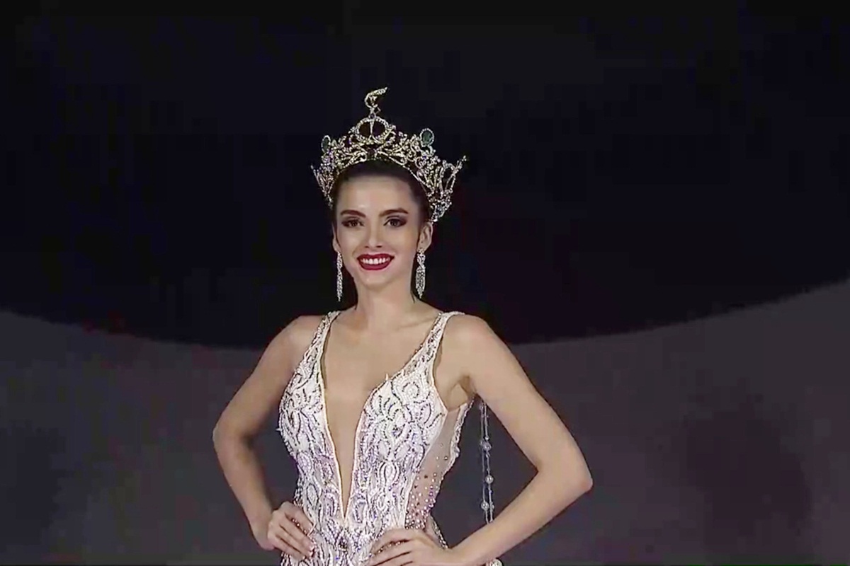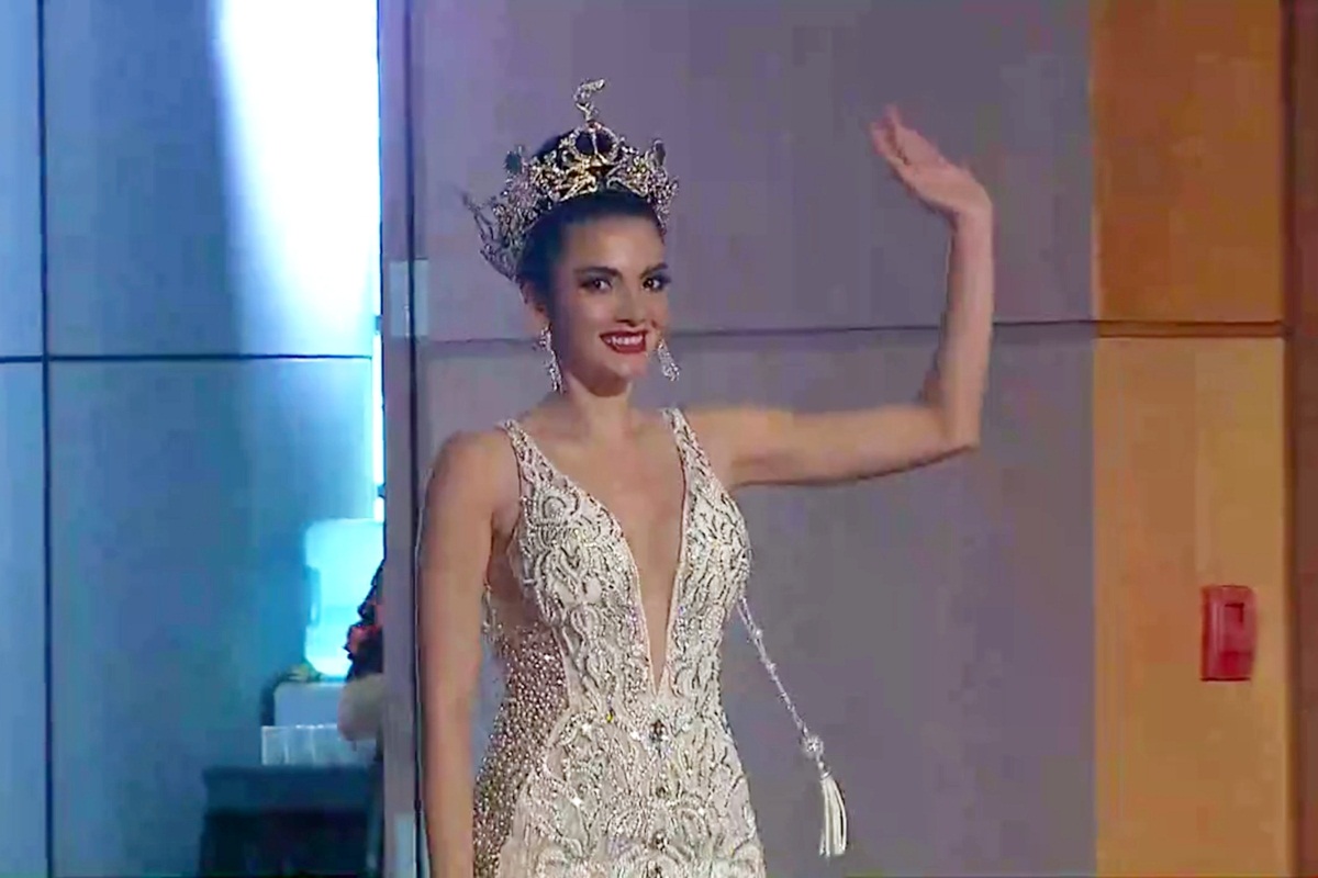Đương kim Hoa hậu Hòa bình Quốc tế người Paraguay - Clara Sosa xuất hiện với bộ cánh lộng lẫy và đội chiếc vương miện được thiết kế mới dành cho tân hoa hậu. Vật phẩm quý giá dành cho Miss Grand International 2019 trị giá 500 nghìn đô, vẫn chọn sắc vàng làm màu chủ đạo.