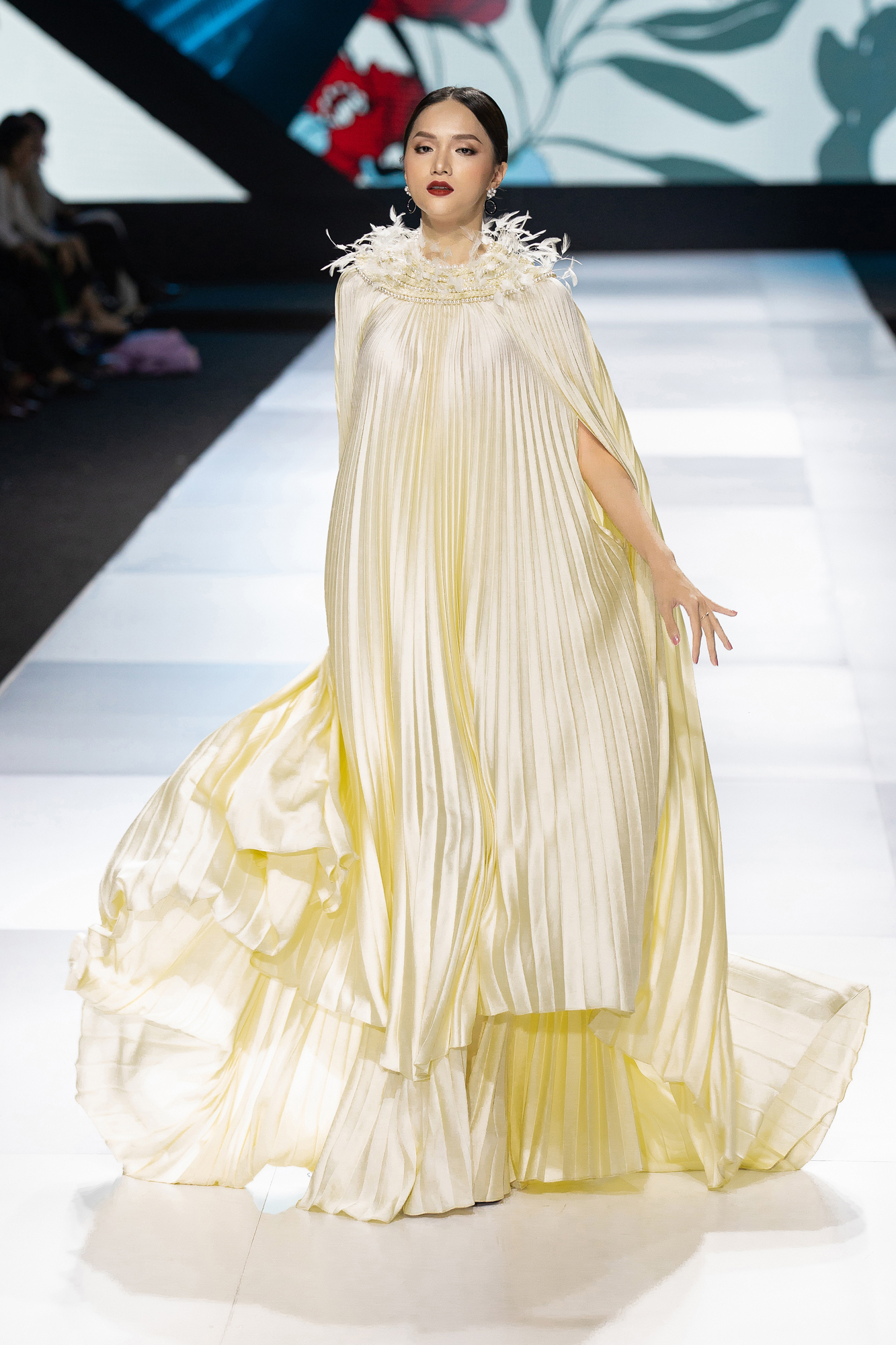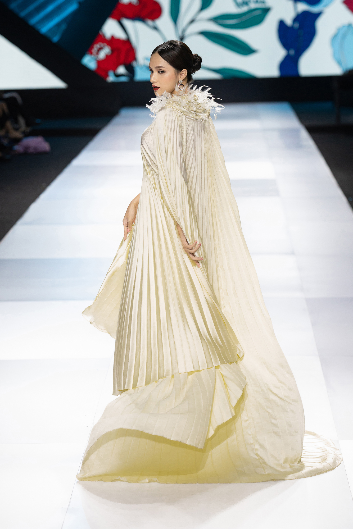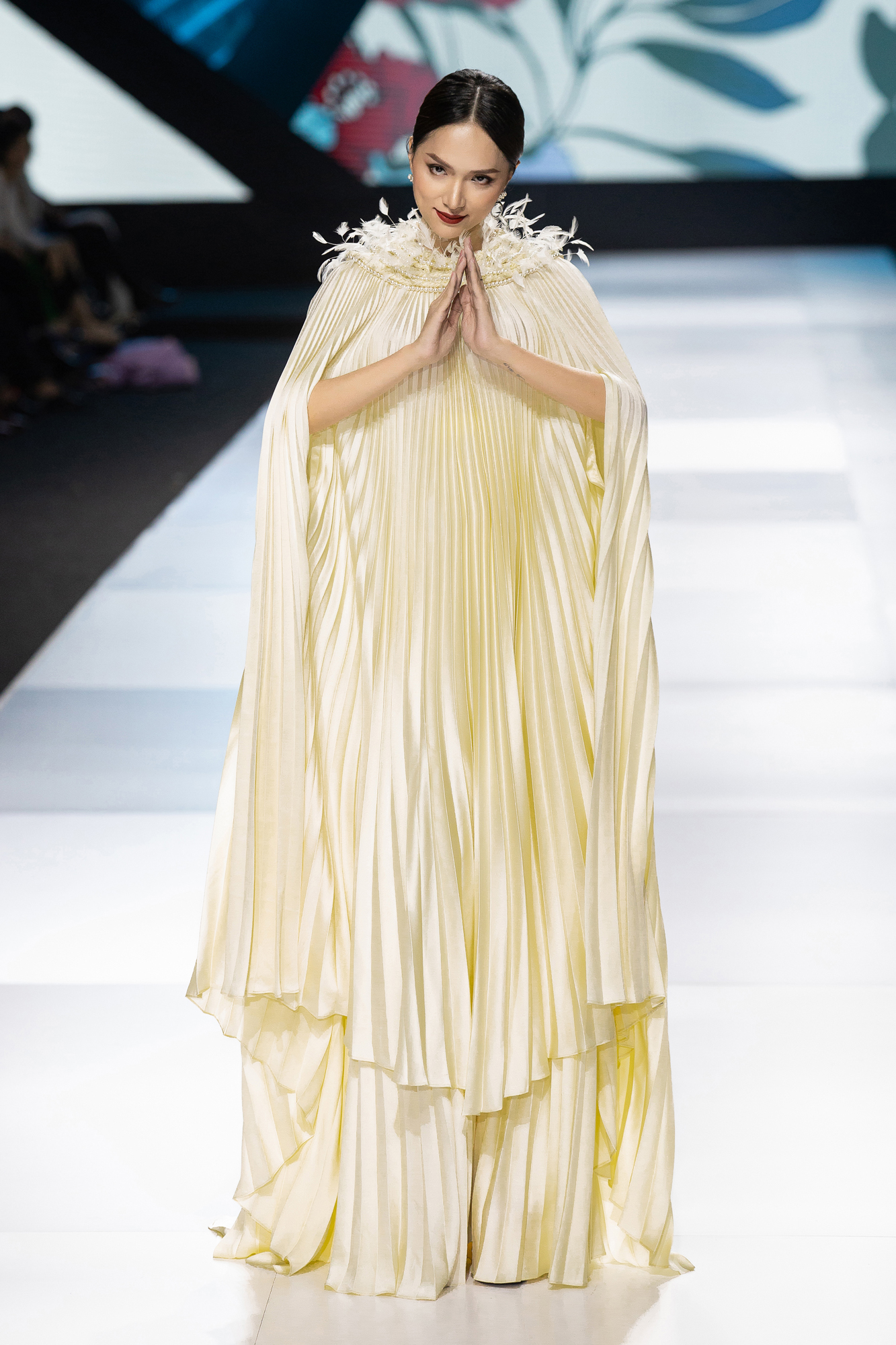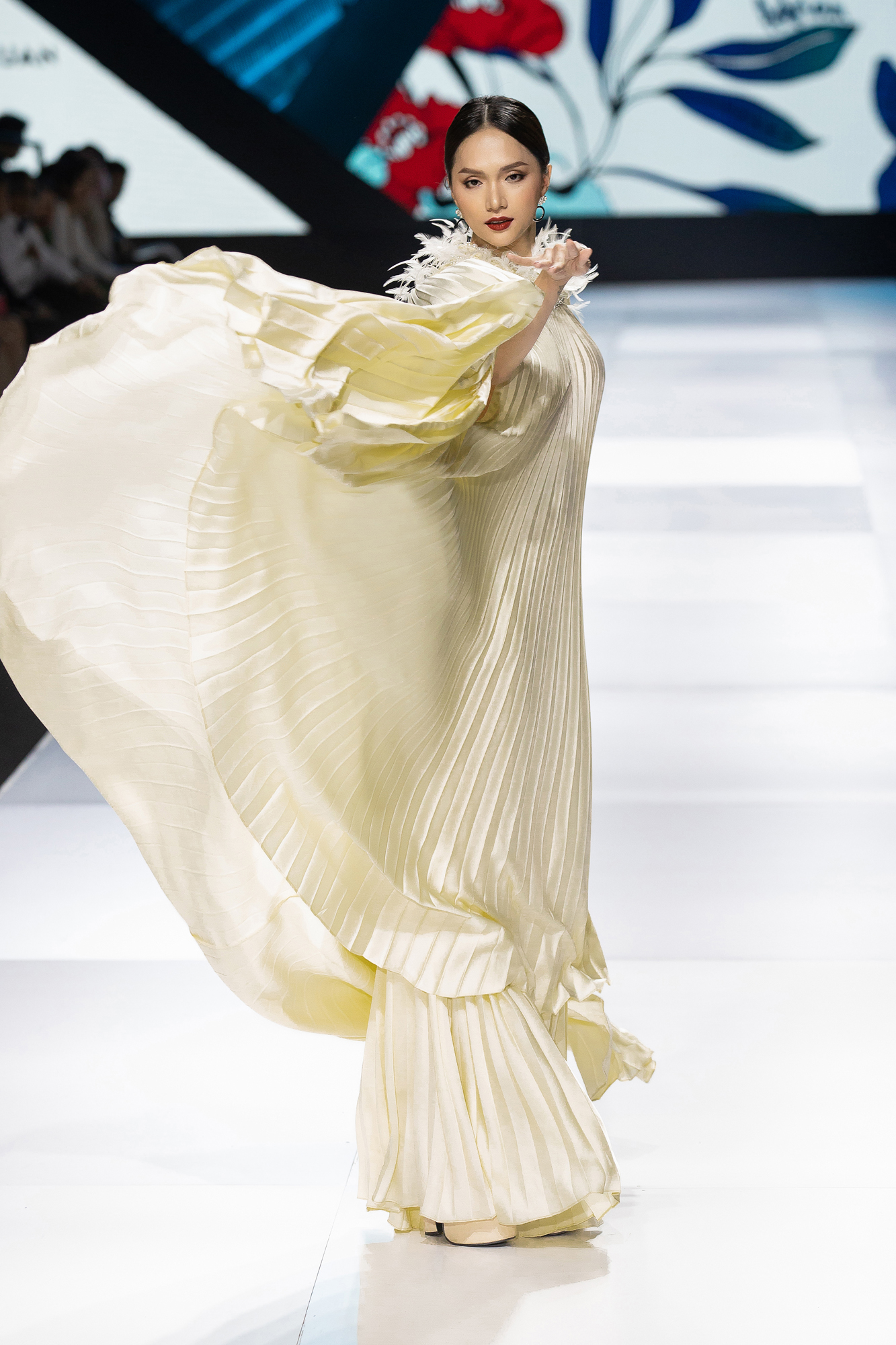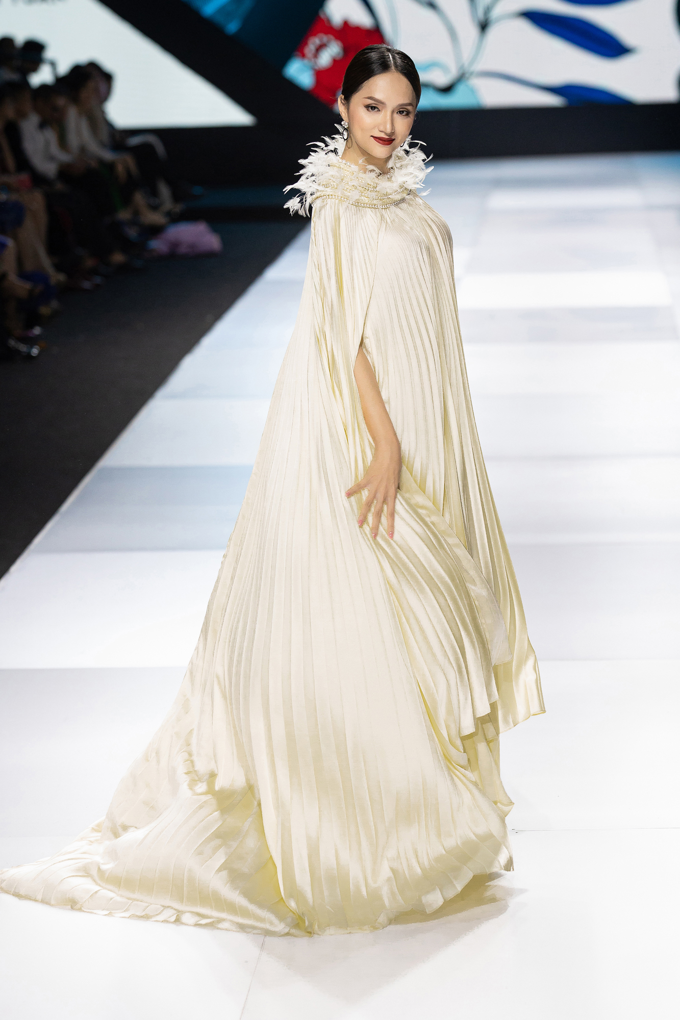 Xuất hiện trên sàn runway, hoa hậu Hương Giang đã thể hiện xuất sắc vai trò vedette. Với những bước catwalk uyển chuyển, đầy năng lượng và thần thái kiêu sa, Miss International Queen 2018 khiến khán giả không thể rời mắt khỏi màn trình diễn.
