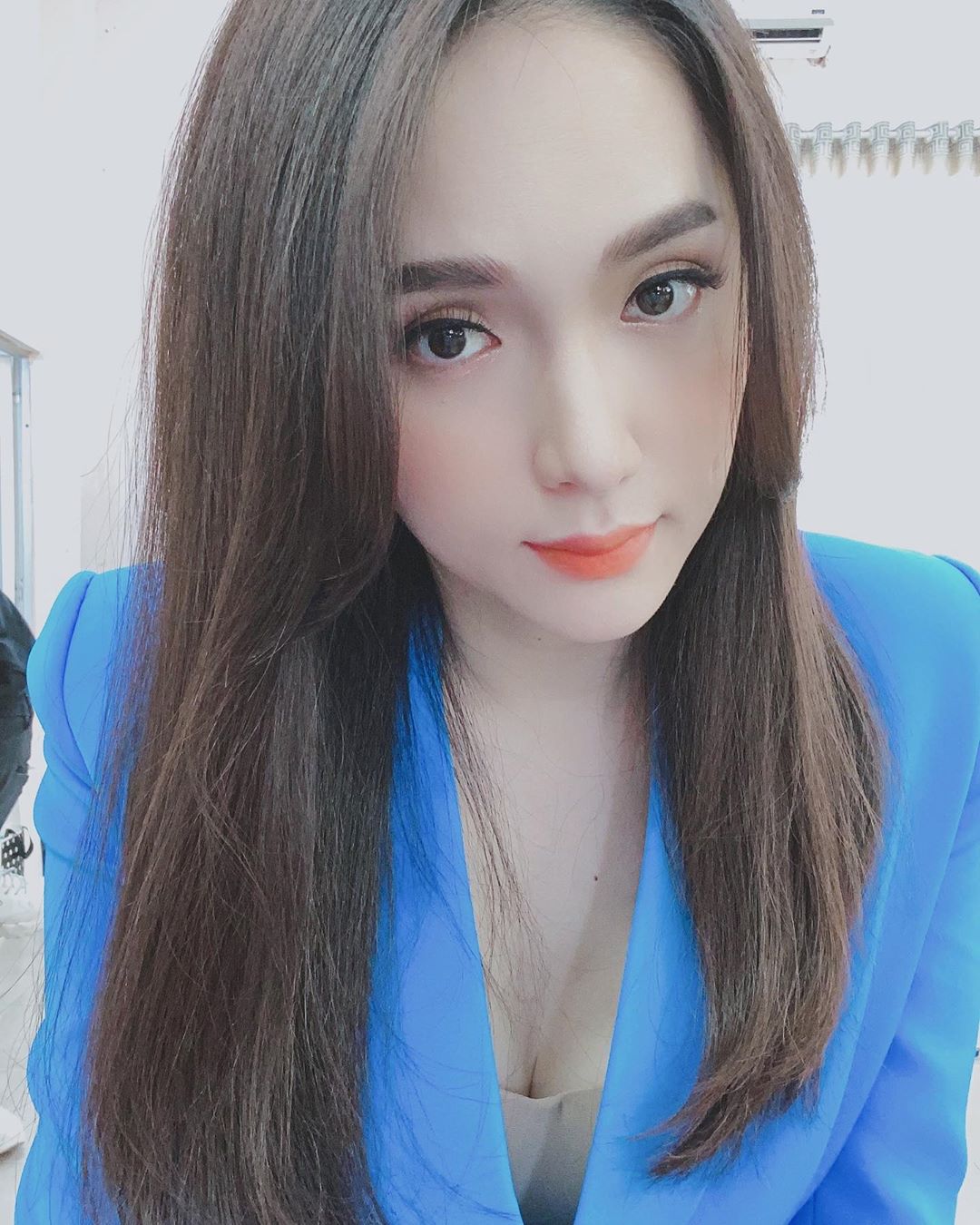 Hương Giang diện vest xanh thanh lịch, cuốn hút fan với layout trang điểm ngọt ngào cùng kiểu tóc thẳng suôn dài.