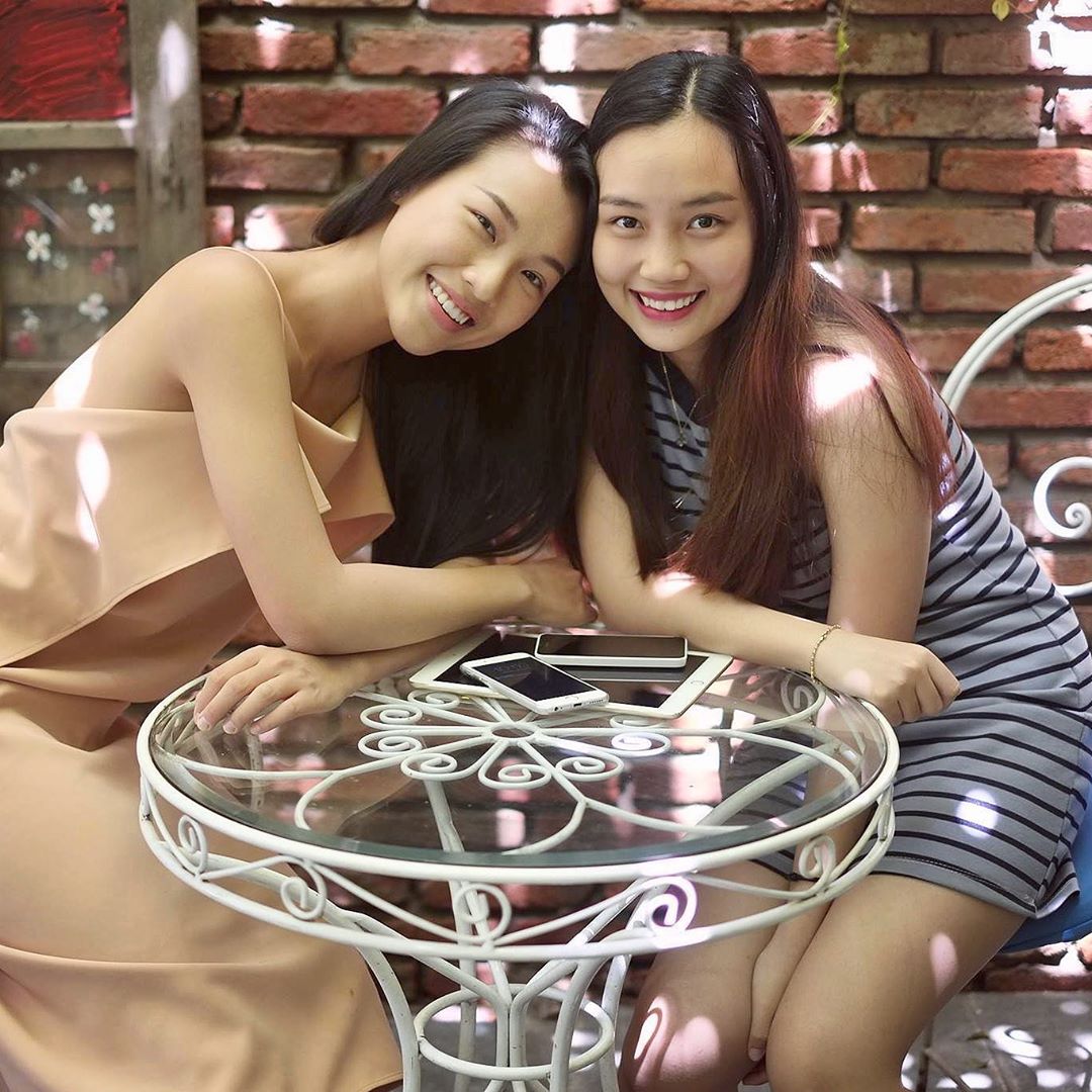 Á hậu Hoàng Oanh tươi tắn chụp hình cùng chị gái.