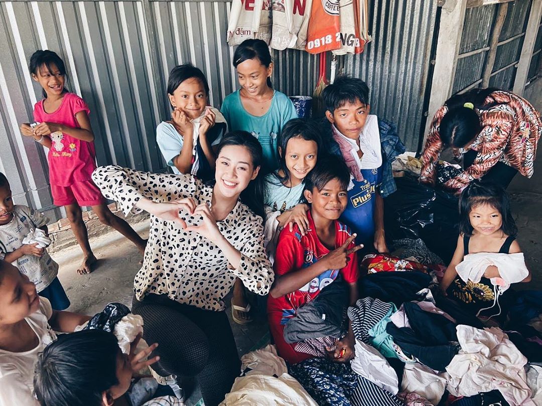 Hoa hậu Khánh Vân mặc giản dị về miền Tây công tác và thành lập nên “Shop quần áo 0 đồng” để phân phát cho bà con và trẻ em nghèo nơi đây.