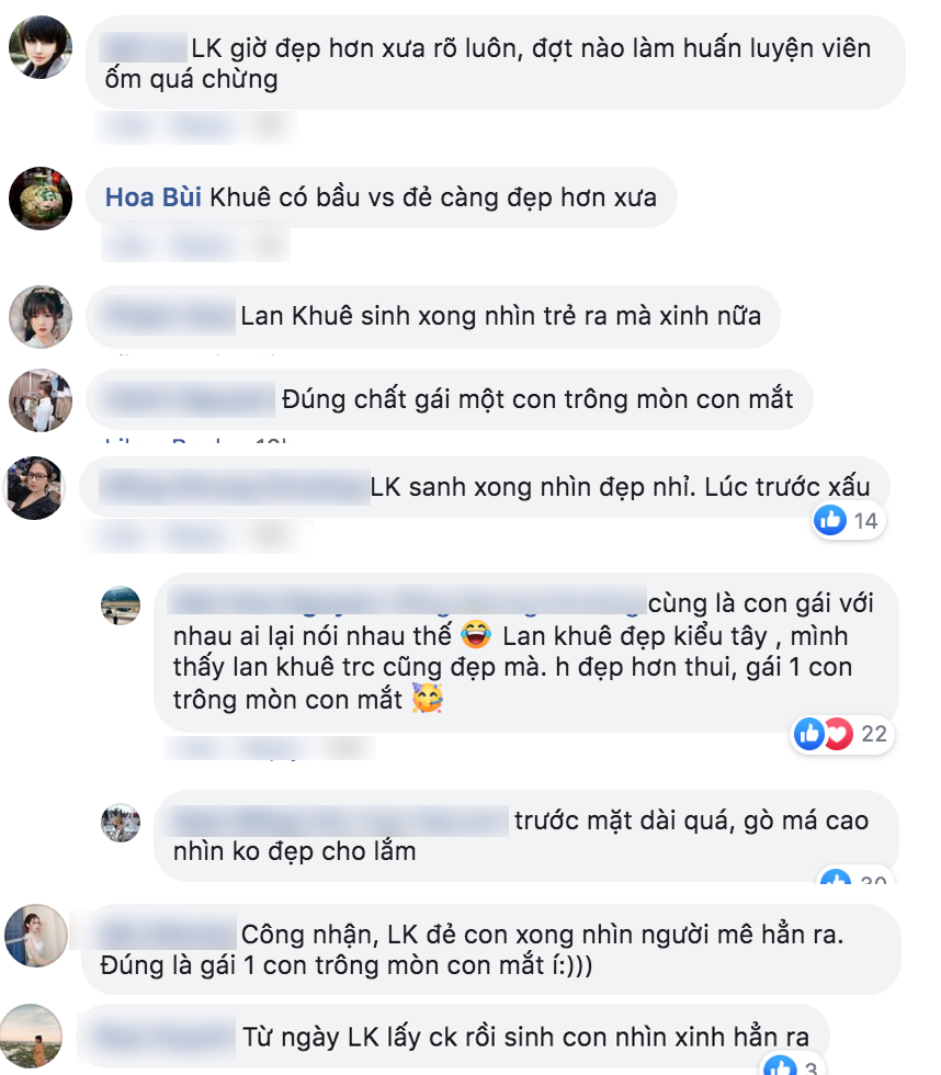 So với trước đây, hình thể của người đẹp đầy đặn hơn nhưng dáng vóc vẫn vô cùng cân đối. Nhiều khán giả dành lời khen cho Lan Khuê “sinh xong nhìn vẫn mướt dễ sợ”.