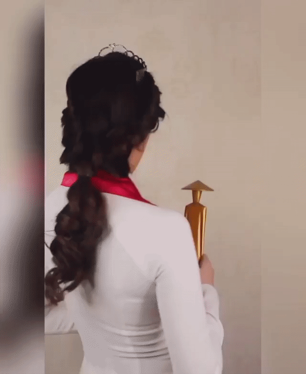 Hoa hậu Khánh Vân “tái hiện” khoảnh khắc đăng quang Miss Áo dài năm 18 tuổi.