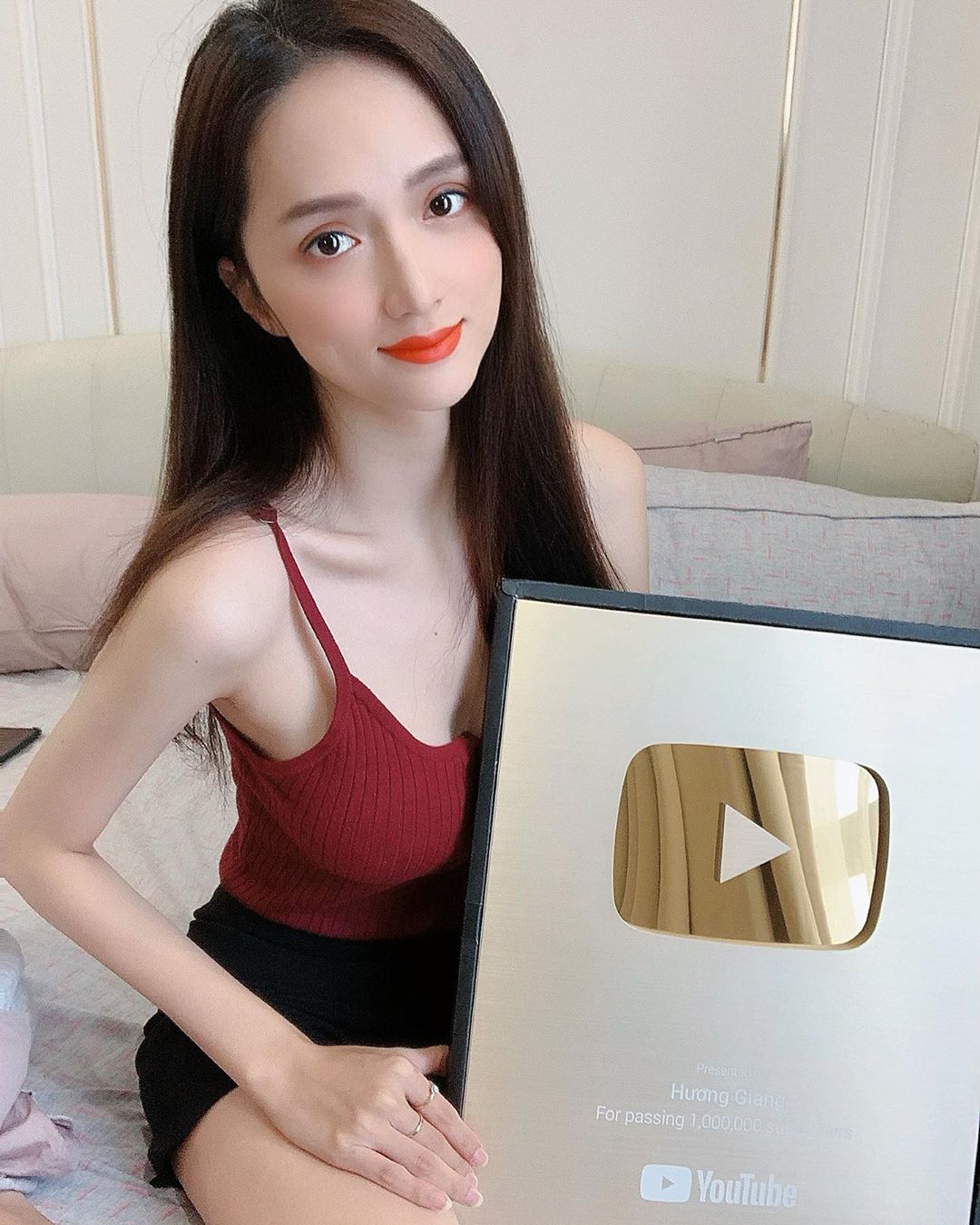 Hương Giang đẹp rạng rỡ, tự hào khoe nút vàng YouTube sau nhiều ngày đợi mong. Mang đến những sản phẩm âm nhạc đầu tư chất lượng, Hoa hậu Chuyển giới Quốc tế 2018 không chỉ nhận được lượt theo dõi “khủng” trên Instagram mà còn đạt được cột mốc hơn 1 triệu subscribe tại kênh YouTube. Thành quả này chứng minh cho những nỗ lực không ngừng nghỉ của hoa hậu - ca sĩ Hương Giang trong quá trình phát triển sự nghiệp nghệ thuật.