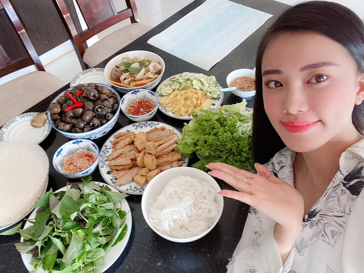 Á hậu Kim Duyên thực hiện thử thách của H'Hen Niê, tự tay vào bếp chế biến bữa ăn thịnh soạn.