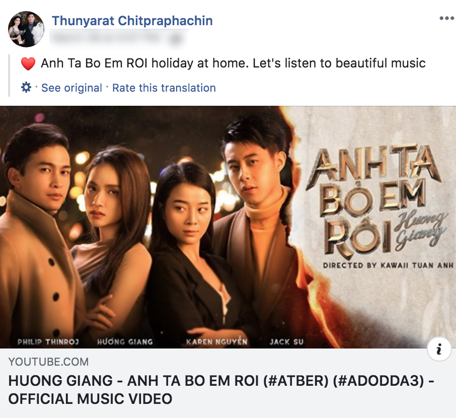 Mỹ nhân Thái chia sẻ sản phẩm âm nhạc của Hương Giang để các fan cùng thưởng thức khi ở nhà tránh dịch.