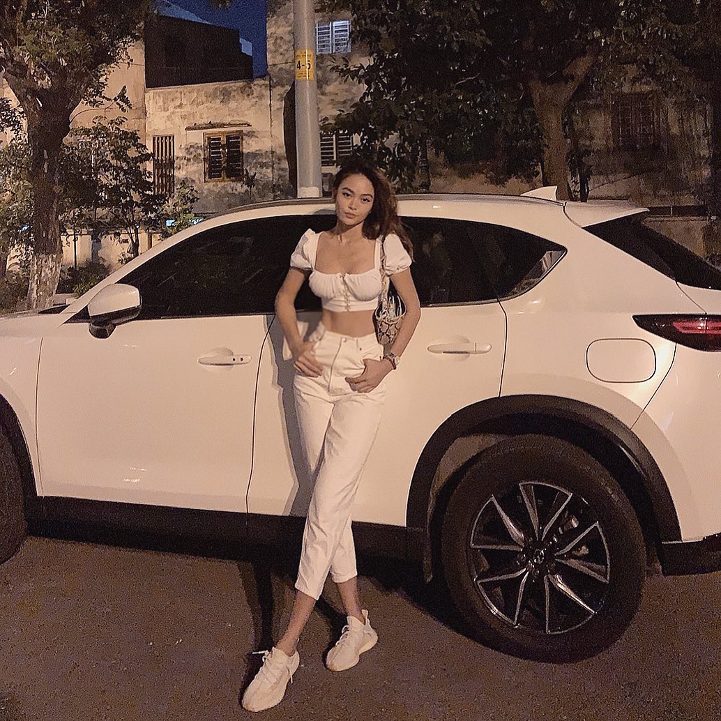 Á hậu Mâu Thủy diện street-style khoe eo gợi cảm bên cạnh “xế hộp” xịn.