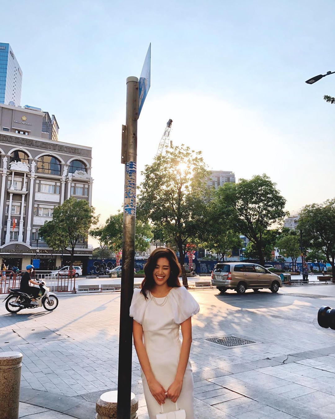 Miss Universe Vietnam Khánh Vân cười tít mắt trong buổi chụp hình trên phố đi bộ Nguyễn Huệ.