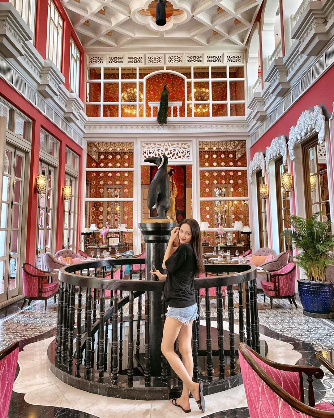 Á hậu Kim Duyên thực hiện màn pose dáng ấn tượng ngay tại khu vực cầu thang.