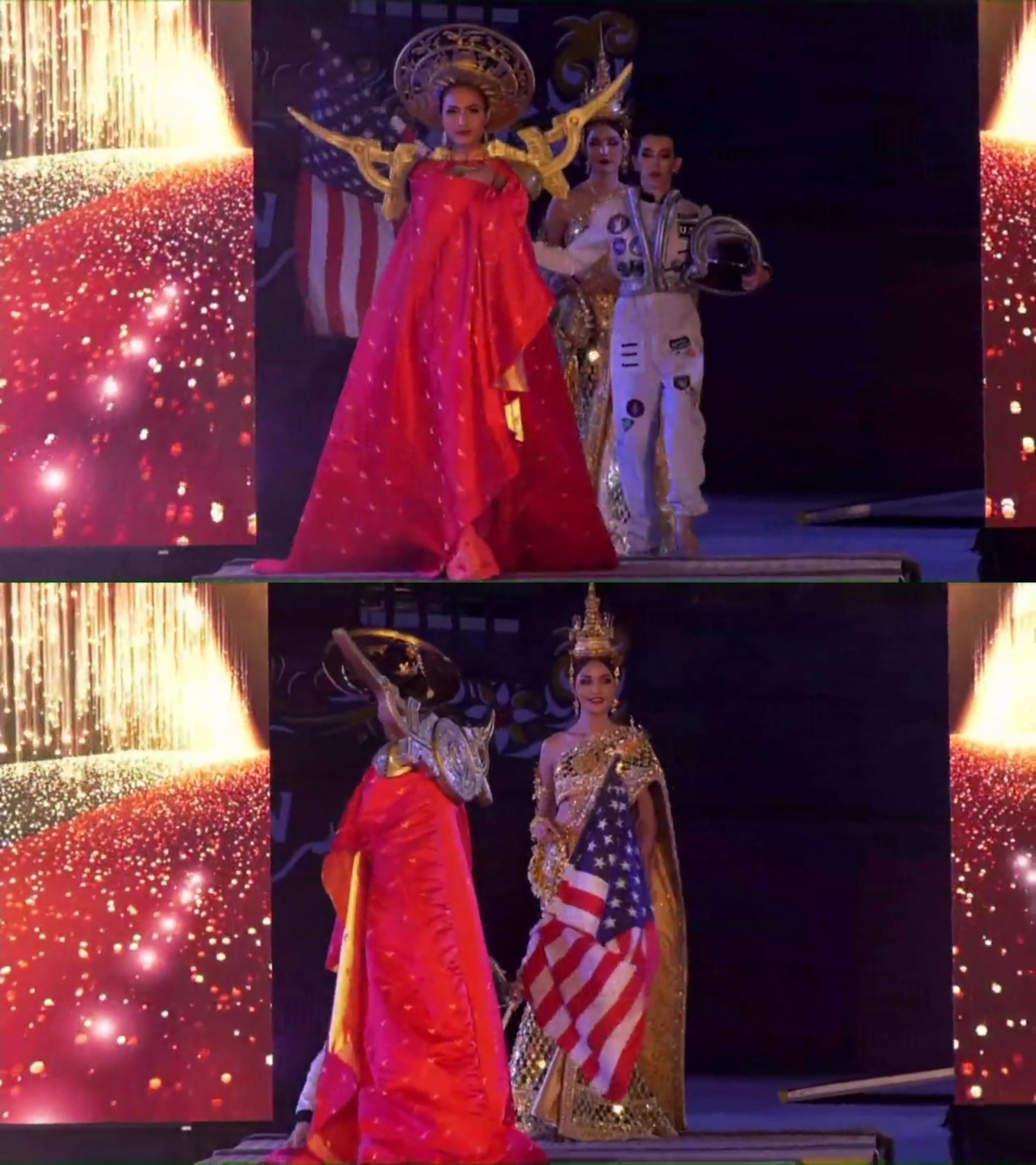 Đại diện Mỹ đã giúp đỡ Hoài Sa thoát khỏi sự cố trong phần thi National Costume.
