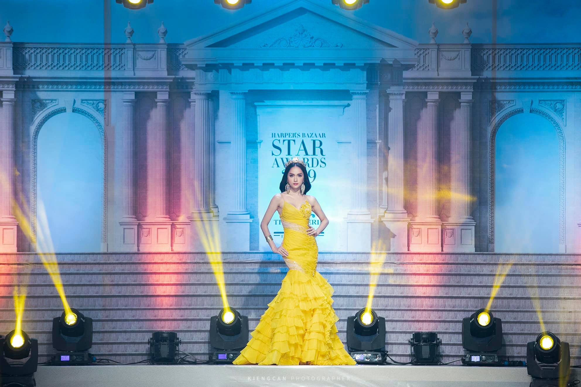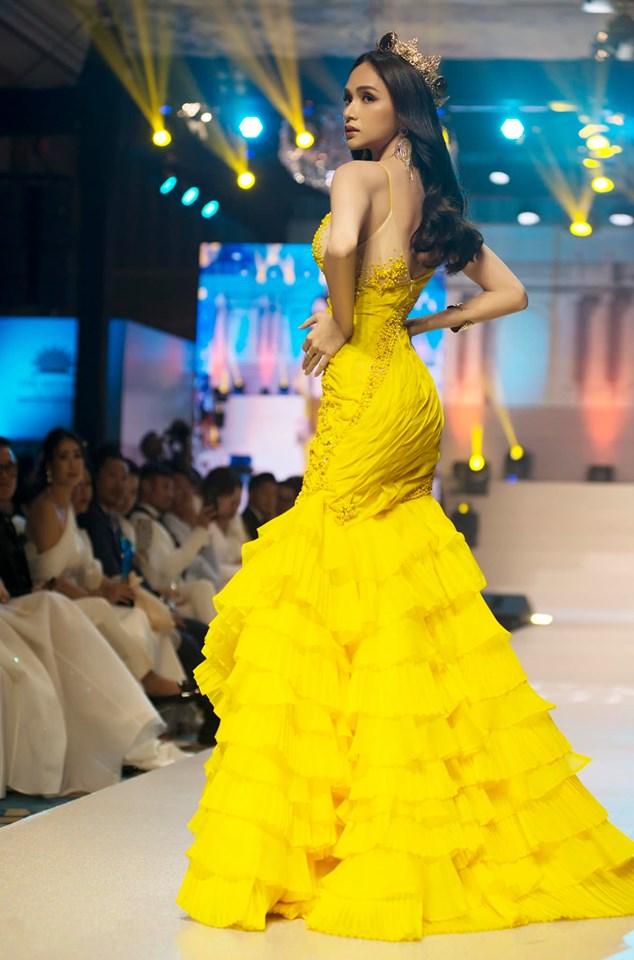 Chính vì thế, lần tái xuất trên sàn runway vừa qua cũng là lần đầu tiên của Hương Giang xuất hiện trong hình ảnh của một “nữ hoàng nhan sắc” sau một thời gian vắng bóng trong giới điệu mộ. Chính vì thế, các fan của cô nàng vô cùng thích thú khi lại được ngắm nhìn vẻ đẹp kiều diễm và kiêu sa của Hương Giang. Với chủ đề “Goddess Of The Star” Hương Giang còn nhắn nhủ các fan: “Phải luôn toả sáng rực rỡ nhất kể cả khi trong lòng đầy bóng tối vây quanh”.