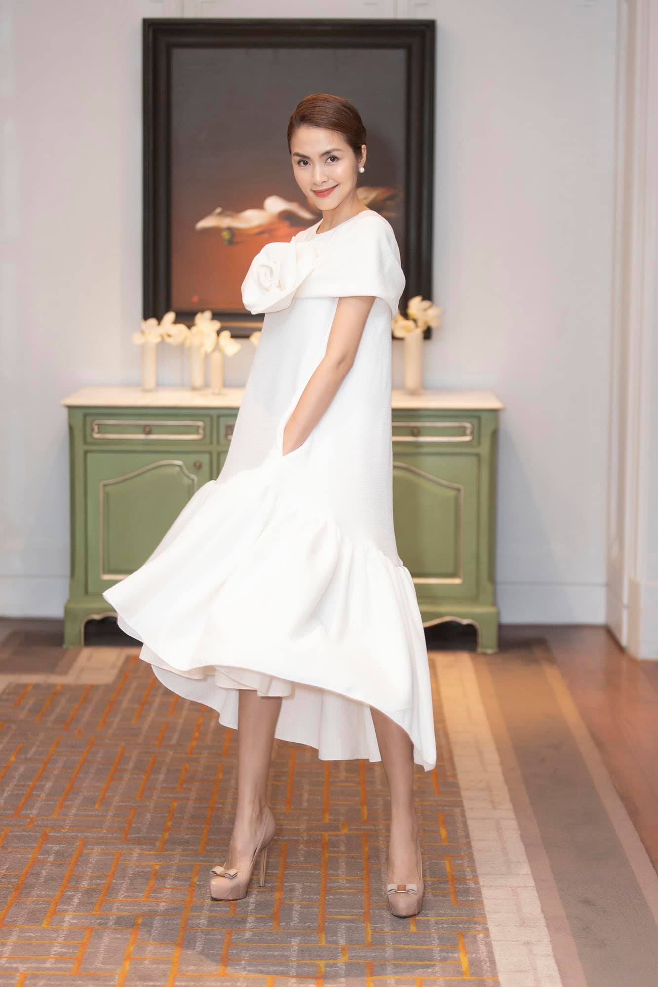 Đả nữ Ngô Thanh Vân vào thu cùng bộ váy màu trắng. Cô khoe đẹp nền nã với khoét cổ xẻ sâu.