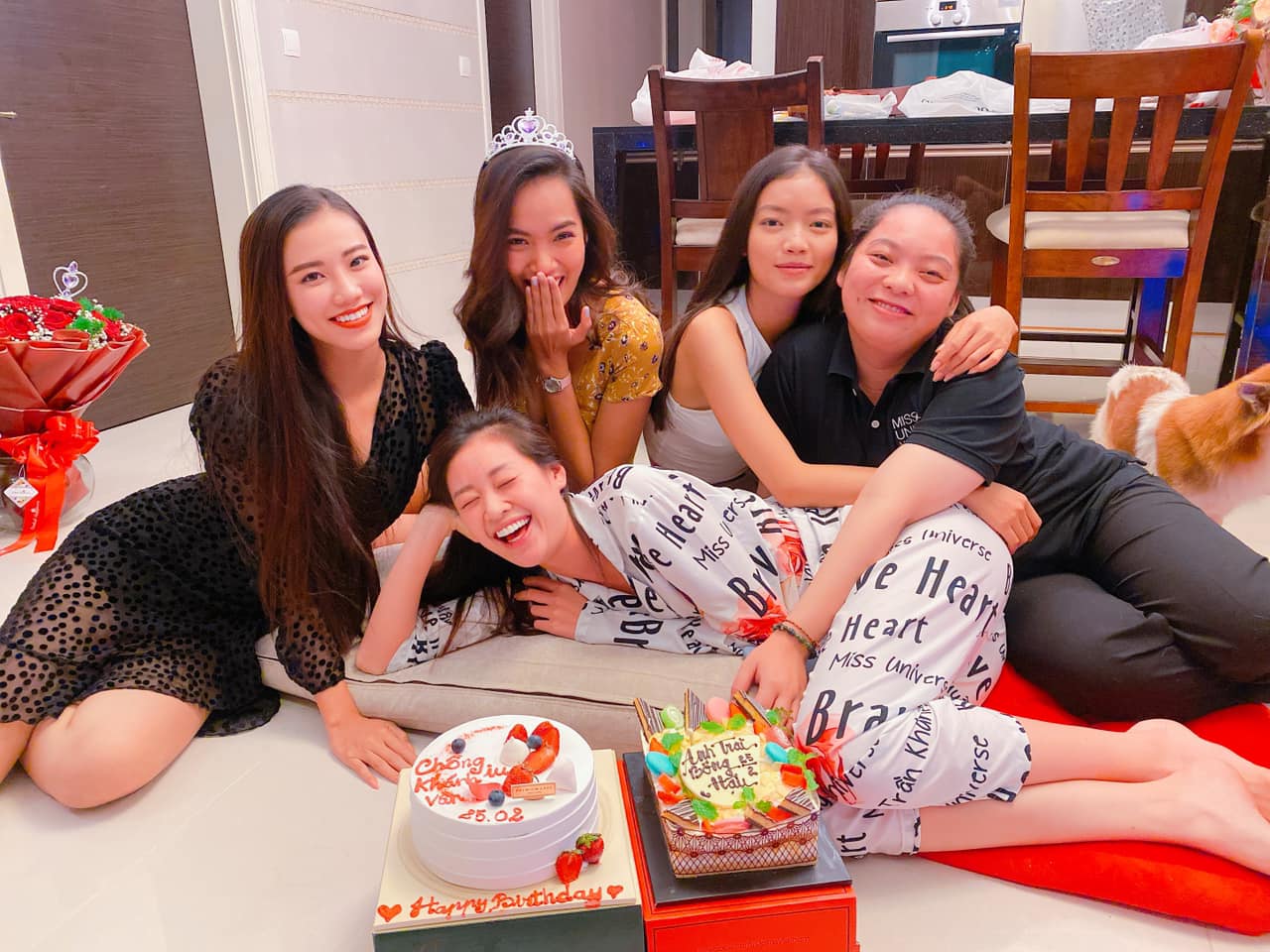 Khánh Vân được thí sinh Miss Universe Vietnam 2019 tổ chức sinh nhật tại căn hộ riêng. Sau 2 tháng kể từ dự án thiện nguyện ở Lai Châu, fan sắc đẹp mới có cơ hội nhìn thấy 2 người đẹp trong Top 10 Lê Hoàng Phương và Lâm Thị Bích Tuyền xuất hiện bên cạnh Khánh Vân và á hậu Kim Duyên. Các người đẹp đã có bữa tiệc vui vẻ và đầm ấm mừng sinh nhật đương kim Hoa hậu Hoàn vũ Việt Nam.