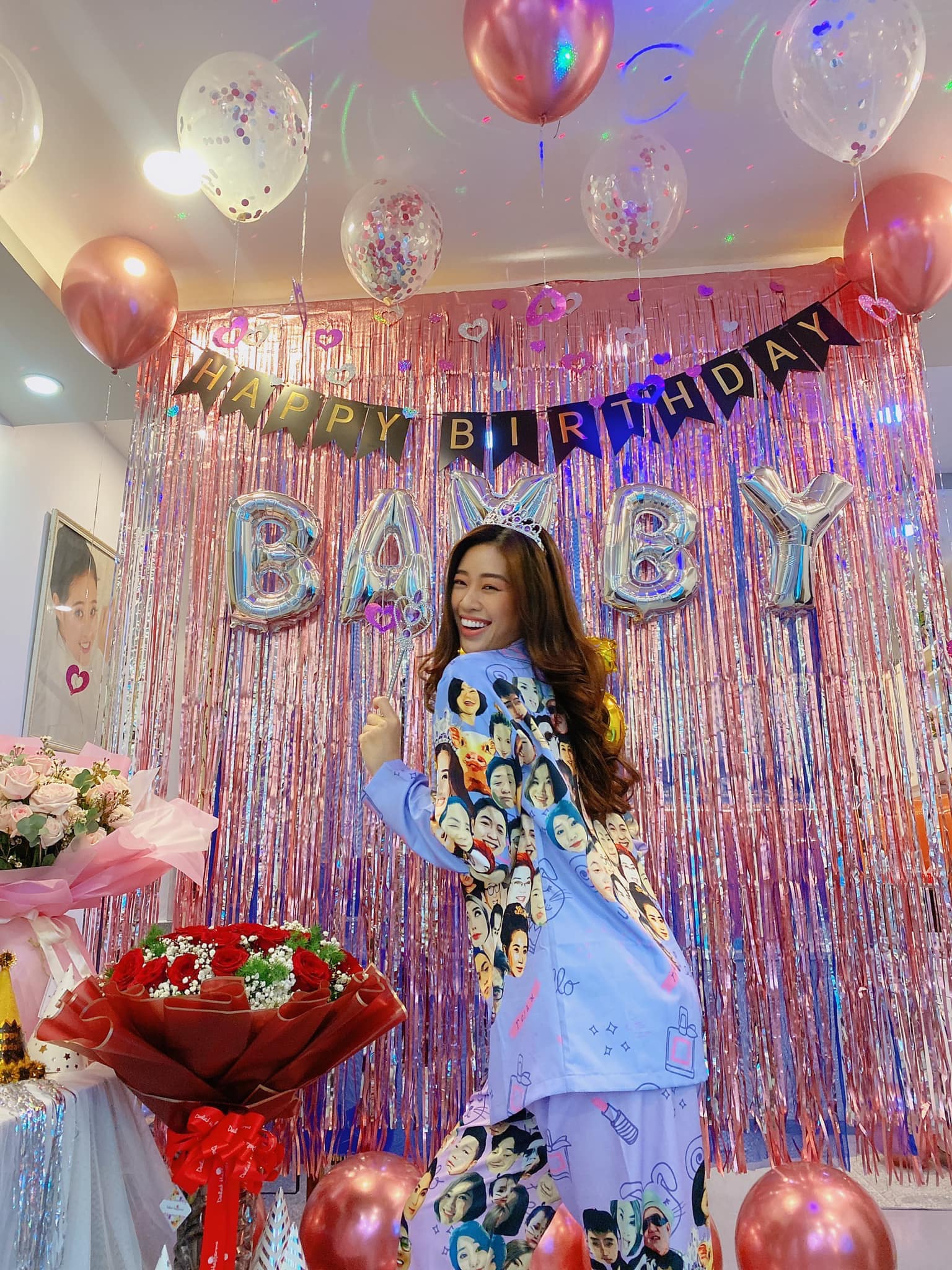 Khánh Vân rạng rỡ đón sinh nhật 25 tuổi với nhiều lời chúc mừng từ sao Việt. Hoa hậu diện bộ đồ được thiết kế riêng với họa tiết in ấn là gương mặt những nhân vật đứng đằng sau đồng hành cùng Khánh Vân trên chặng đường đương nhiệm.