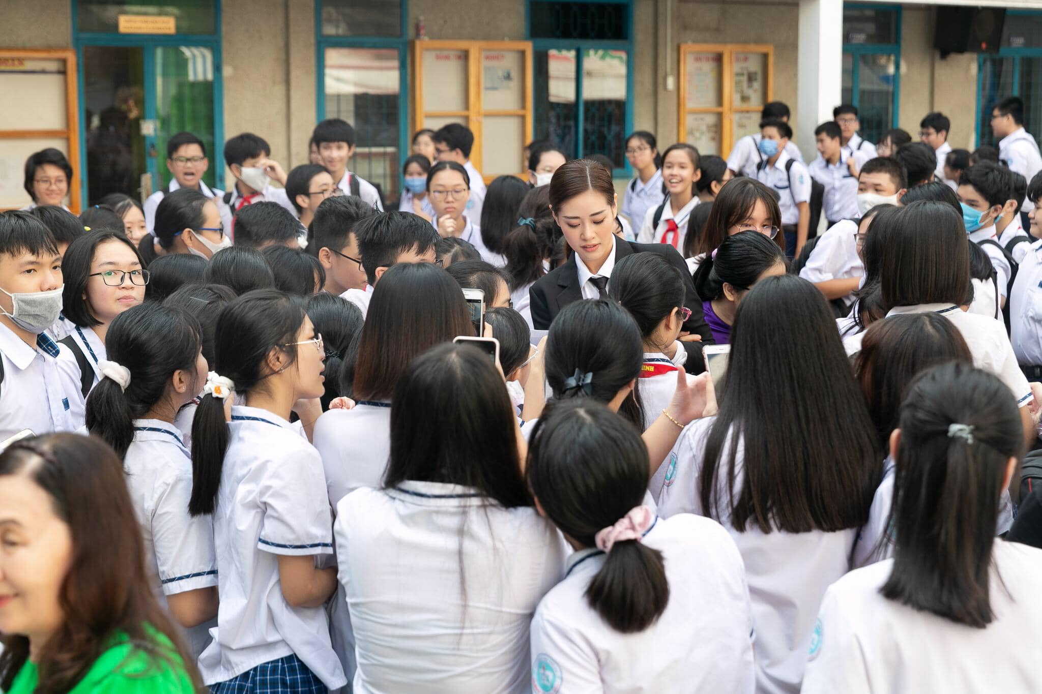 Đến trường học giao lưu, Khánh Vân bất ngờ và choáng ngợp trước vòng vây của người hâm mộ. Sự có mặt của hoa hậu khiến khuôn viên trường trở nên náo động. Nhiều em học sinh bày tỏ sự ngưỡng mộ và bao quanh nàng hậu để xin chữ ký kỷ niệm. Không chỉ dành lời khen cho chữ ký đẹp của Khánh Vân, nhiều học sinh còn bày tỏ niềm mong mỏi và trao niềm tin người đẹp sẽ mang về chiếc vương miện Hoa hậu Hoàn vũ đầu tiên cho Việt Nam.