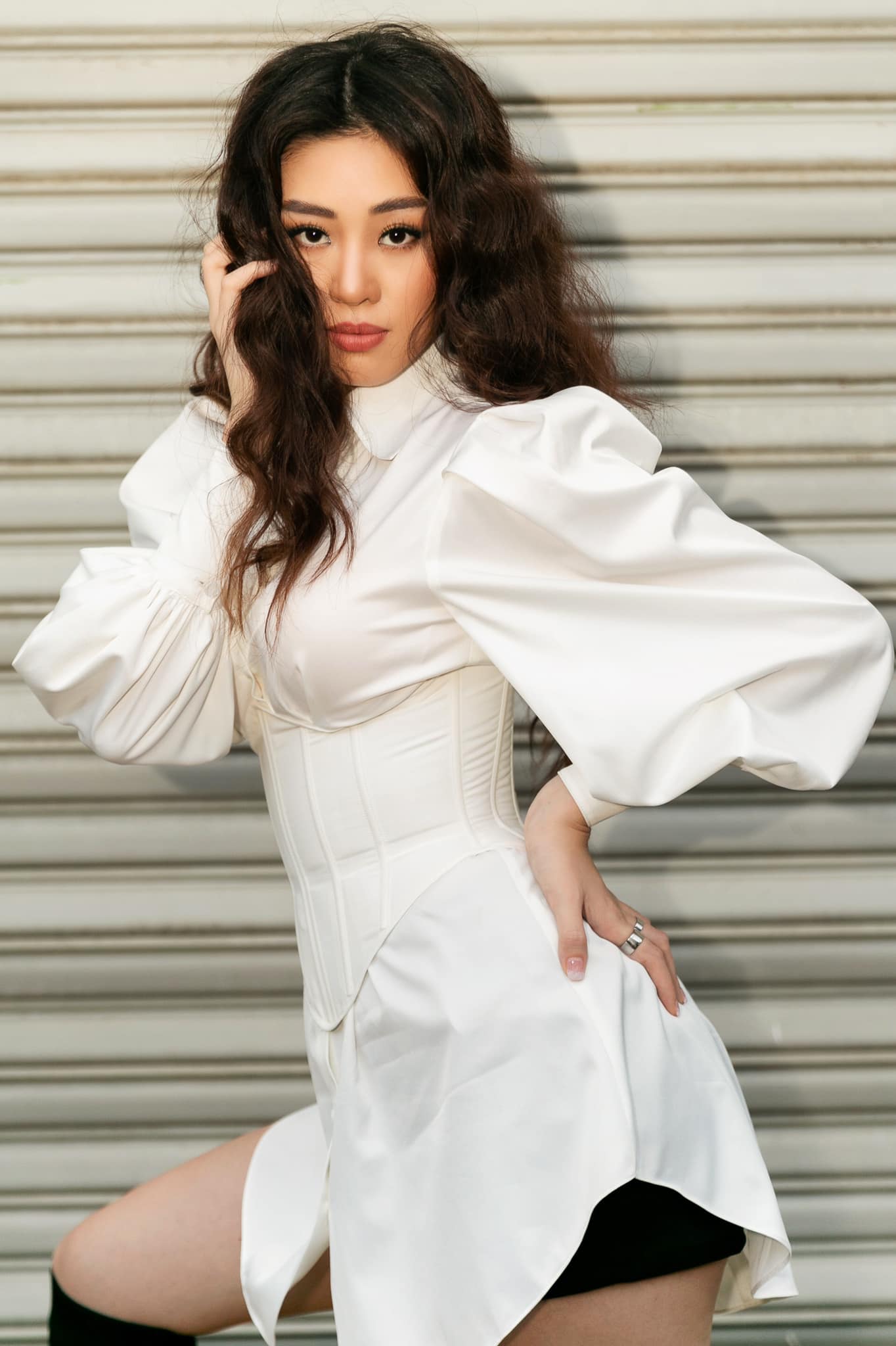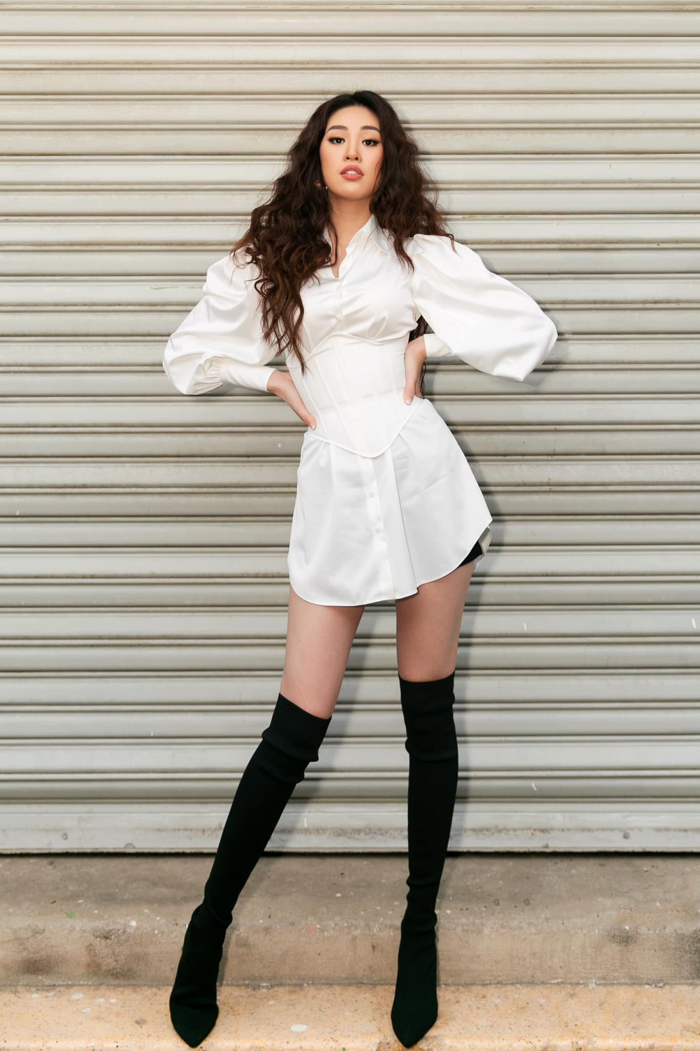 Diện váy ôm eo bó sát, Khánh Vân khéo khoe “đáy thắt lưng ong” đáng ngưỡng mộ, đặc biệt là đôi chân dài cực phẩm đáng mơ ước. Layout make-up ấn tượng cùng với mẫu thiết kế tôn dáng giúp nàng hậu trở nên cực kỳ cuốn hút.