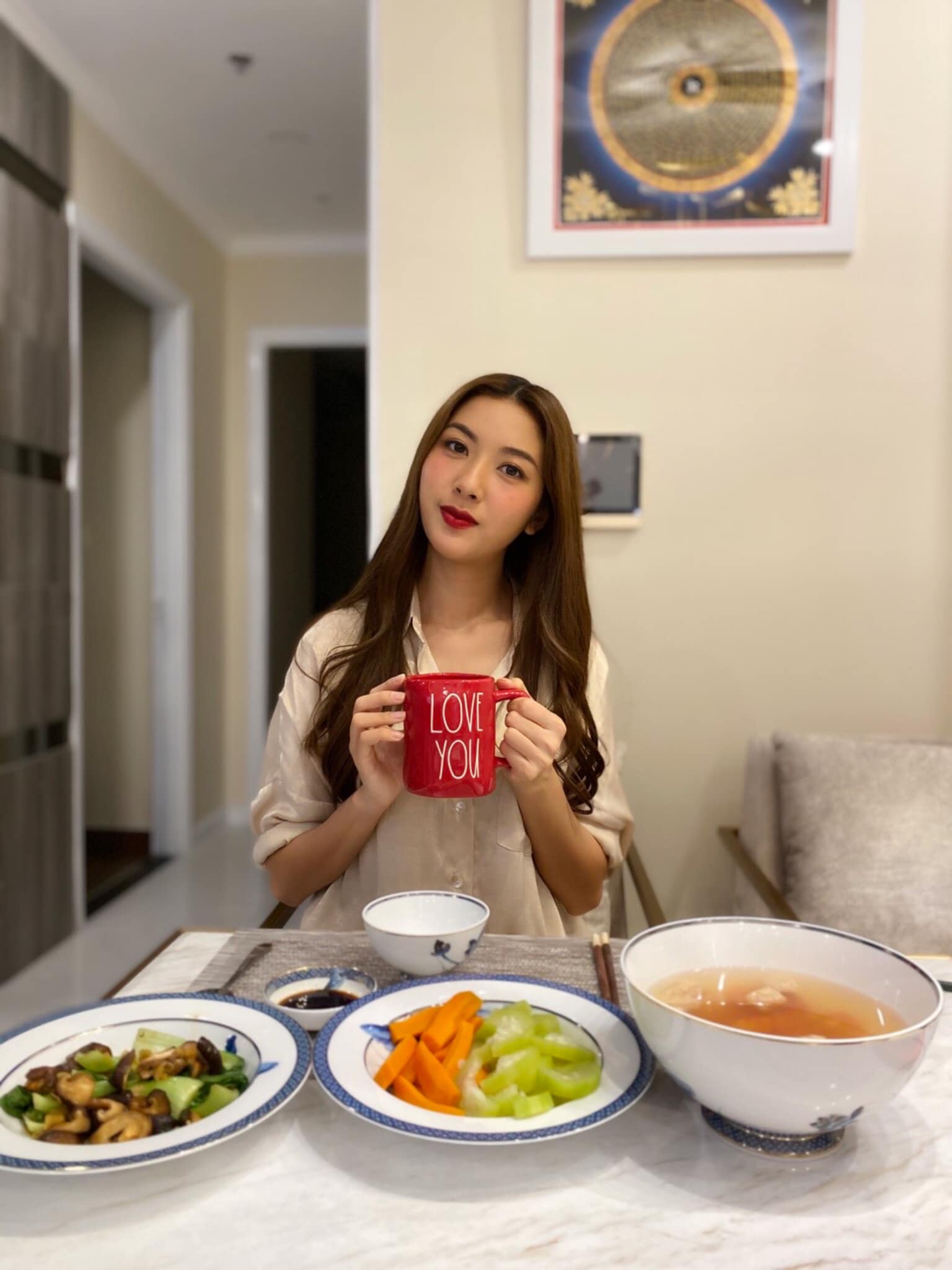 Thúy Vân khoe nhan sắc ngọt ngào và hình ảnh bữa cơm chay do tự tay mình chuẩn bị. Fan công nhận Á hậu 2 Miss Universe Vietnam 2019 không chỉ tài giỏi mà còn rất đảm đang.