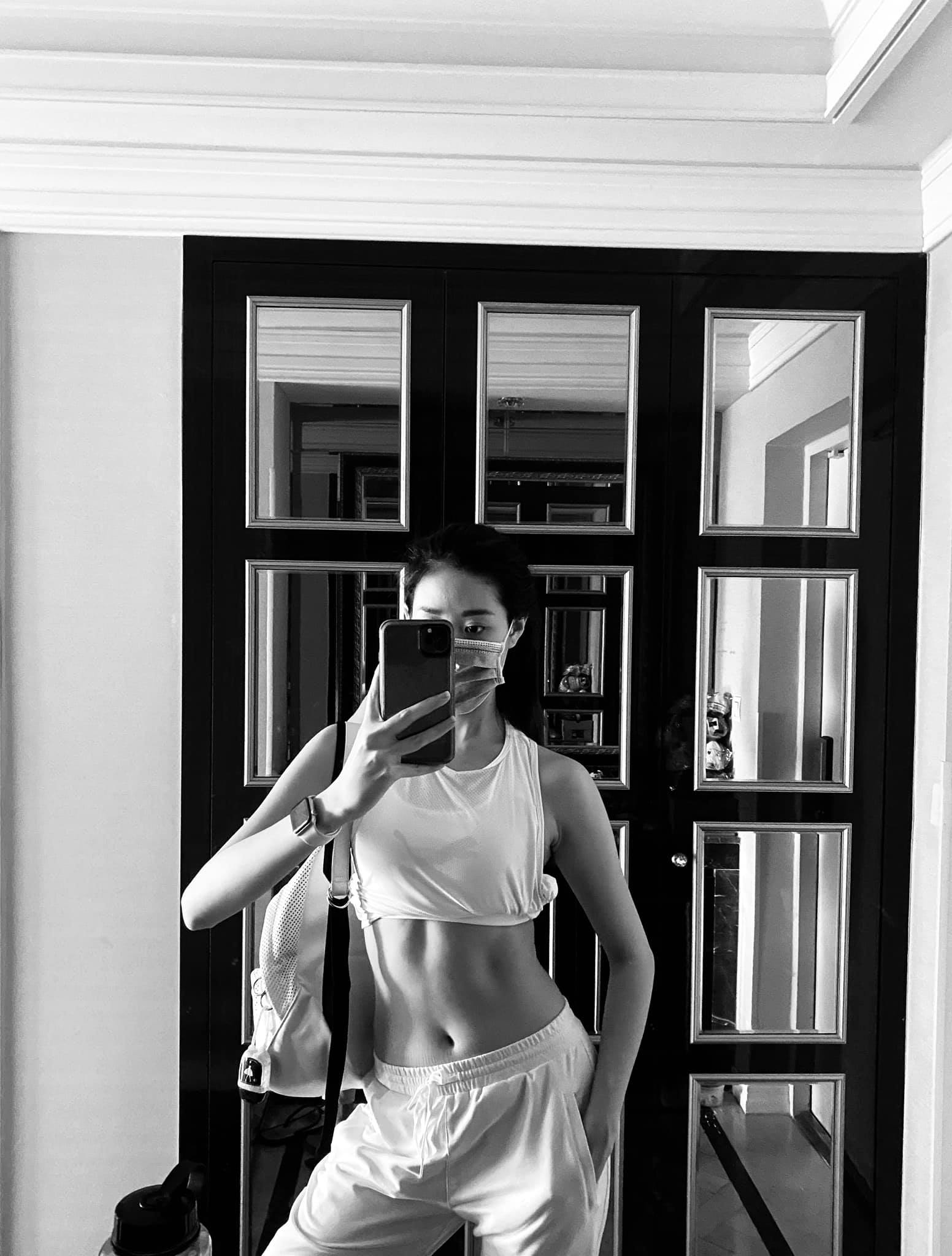 Nàng hậu khoe body thon gọn với phần múi bụng săn chắc gây chú ý với khán giả hâm mộ.