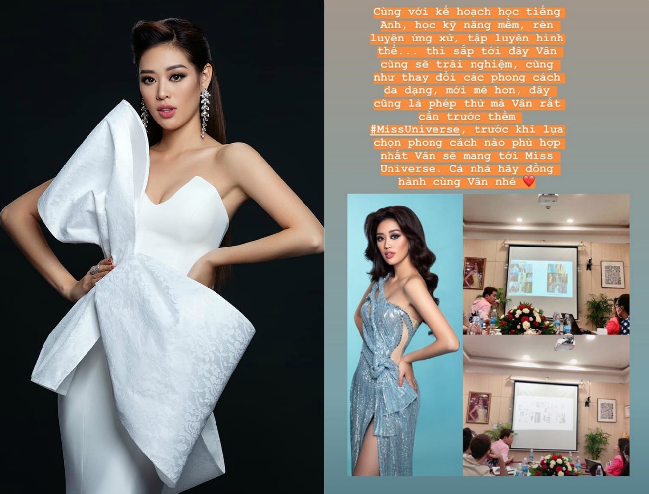 Chia sẻ với khán giả, Hoa hậu Hoàn vũ Việt Nam 2019 cho biết cùng với kế hoạch học tiếng Anh, trau dồi kỹ năng mềm, rèn luyện ứng xử, luyện tập hình thể, cô nàng sẽ bước vào hành trình tìm kiếm hình ảnh cho Miss Universe: “Sắp tới đây, Vân sẽ trải nghiệm, cũng như thay đổi các phong cách đa dạng, mới mẻ. Đây là phép thử mà Vân rất cần để chuẩn bị cho cuộc thi”. Người đẹp cũng liên tục cập nhật những hoạt động của bản thân để người hâm mộ quan tâm theo dõi hành trình Road To Miss Universe 2021.