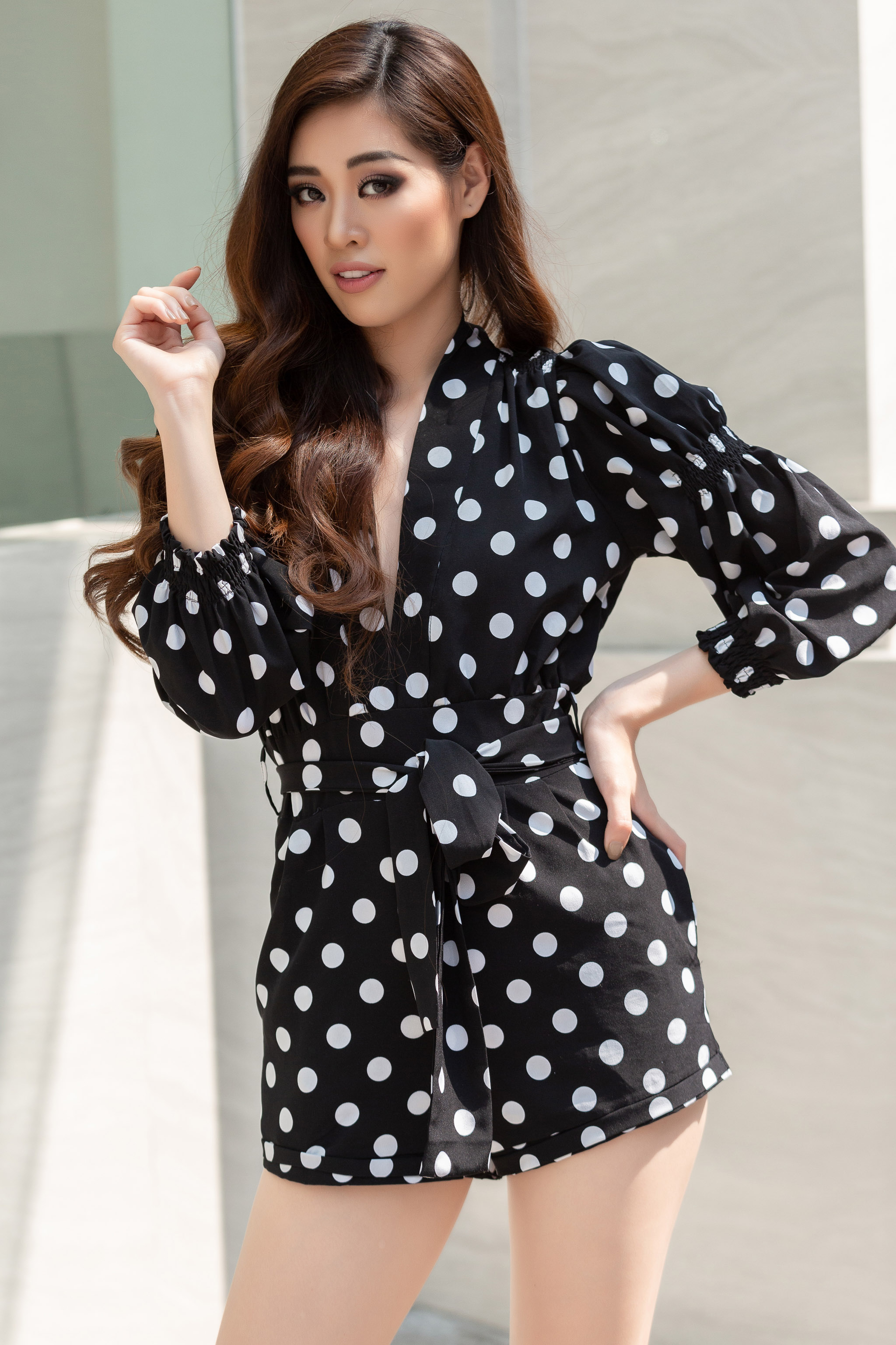 Hoa hậu Khánh Vân đẹp tươi tắn trong thiết kế váy dạo phố chấm bi.