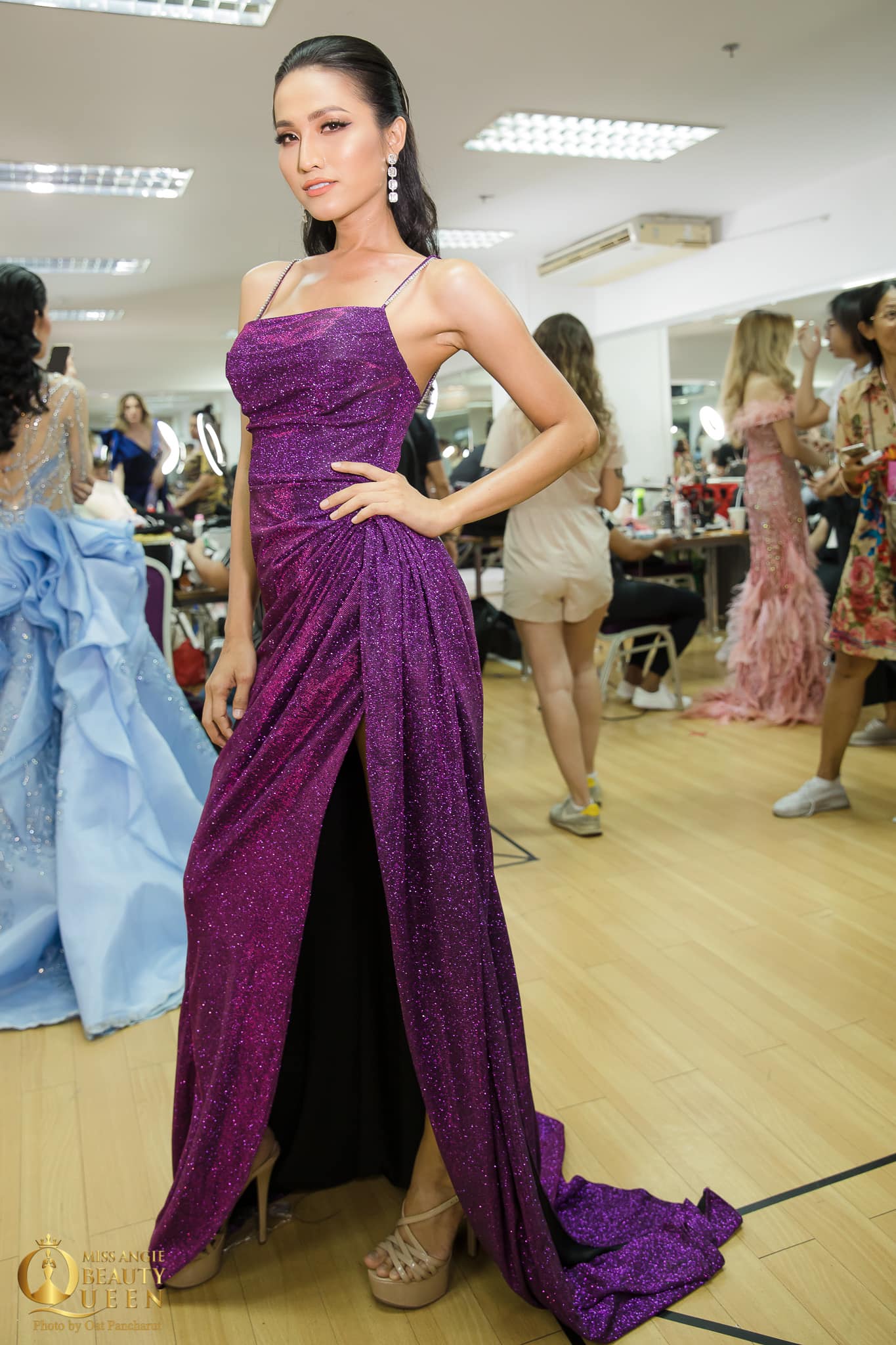 Hoài Sa tiết lộ với khán giả quốc tế về lý do chọn váy tím trong phần thi Trang phục dạ hội ở đêm thi chung kết.