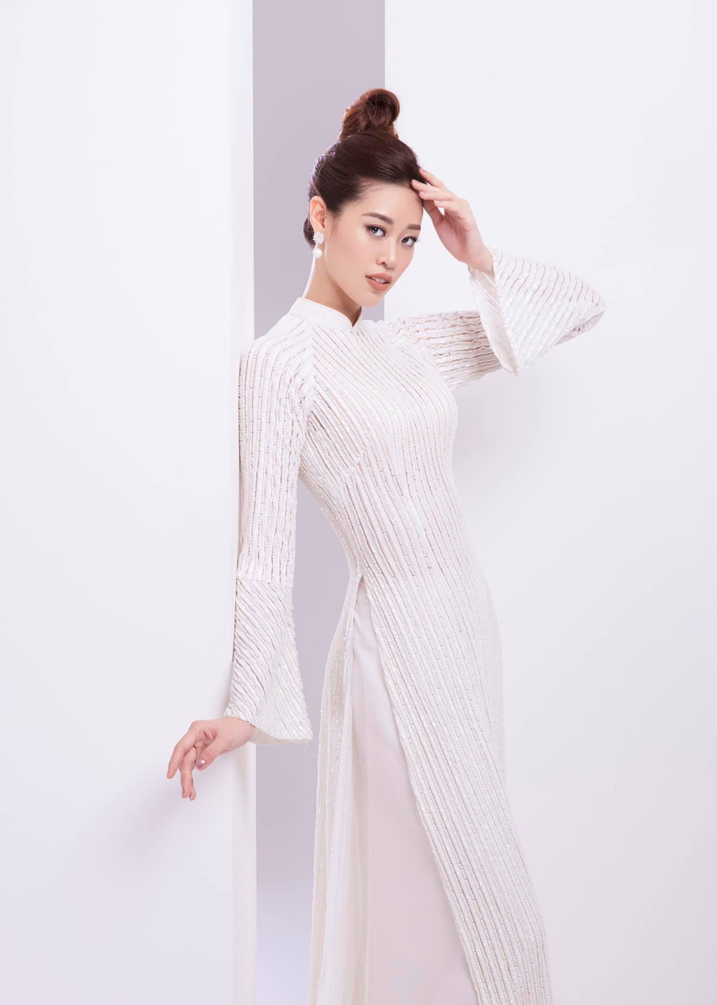 Khánh Vân rất có duyên với áo dài. Hai lần đạt giải Người đẹp áo dài tại Miss Universe Vietnam và nhiều giải thưởng khác liên quan đến bộ quốc phục này.