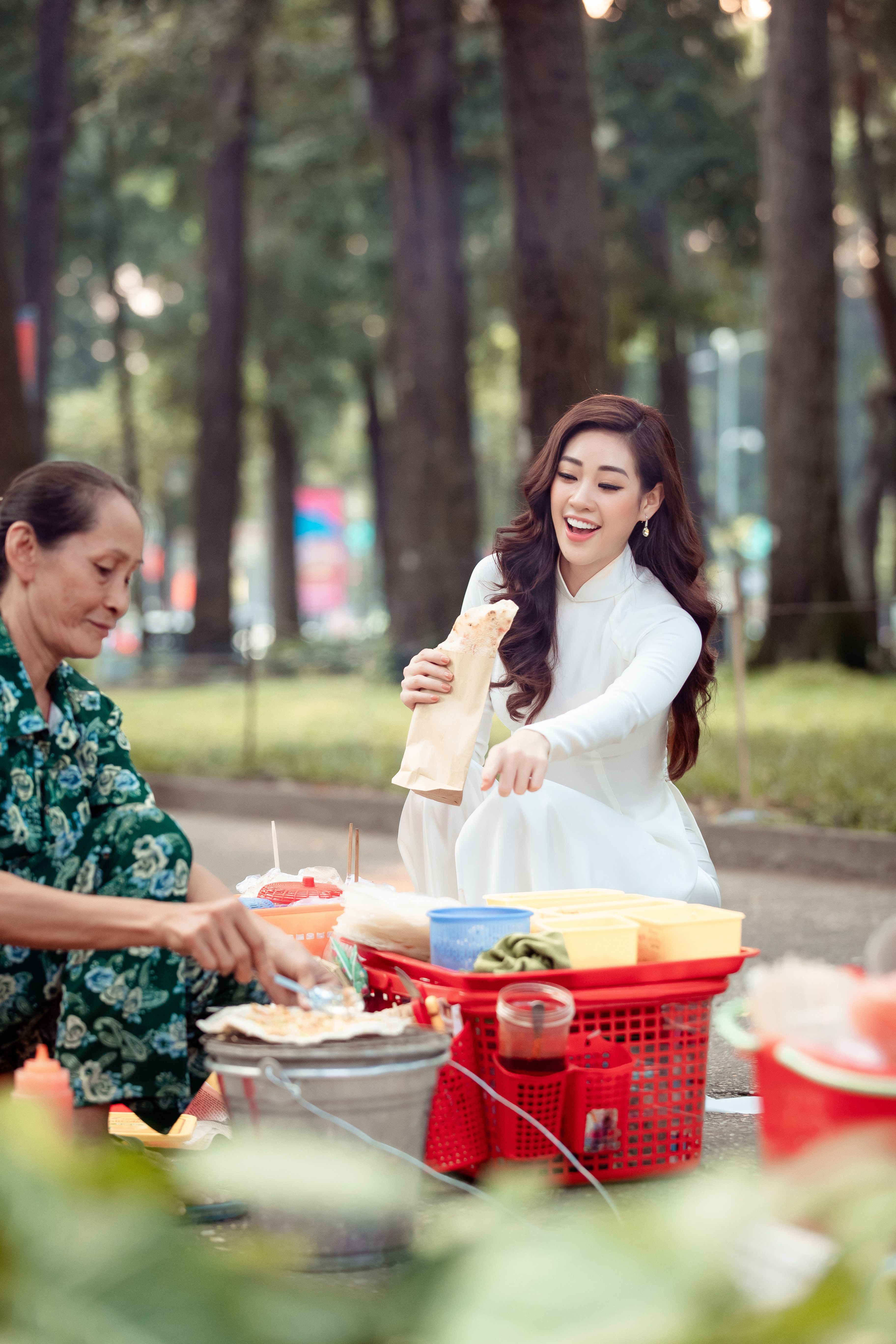 Vẻ đẹp dịu dàng, trong sáng của Hoa hậu Hoàn vũ Việt Nam 2019 - Nguyễn Trần Khánh Vân trong tà áo dài trắng.