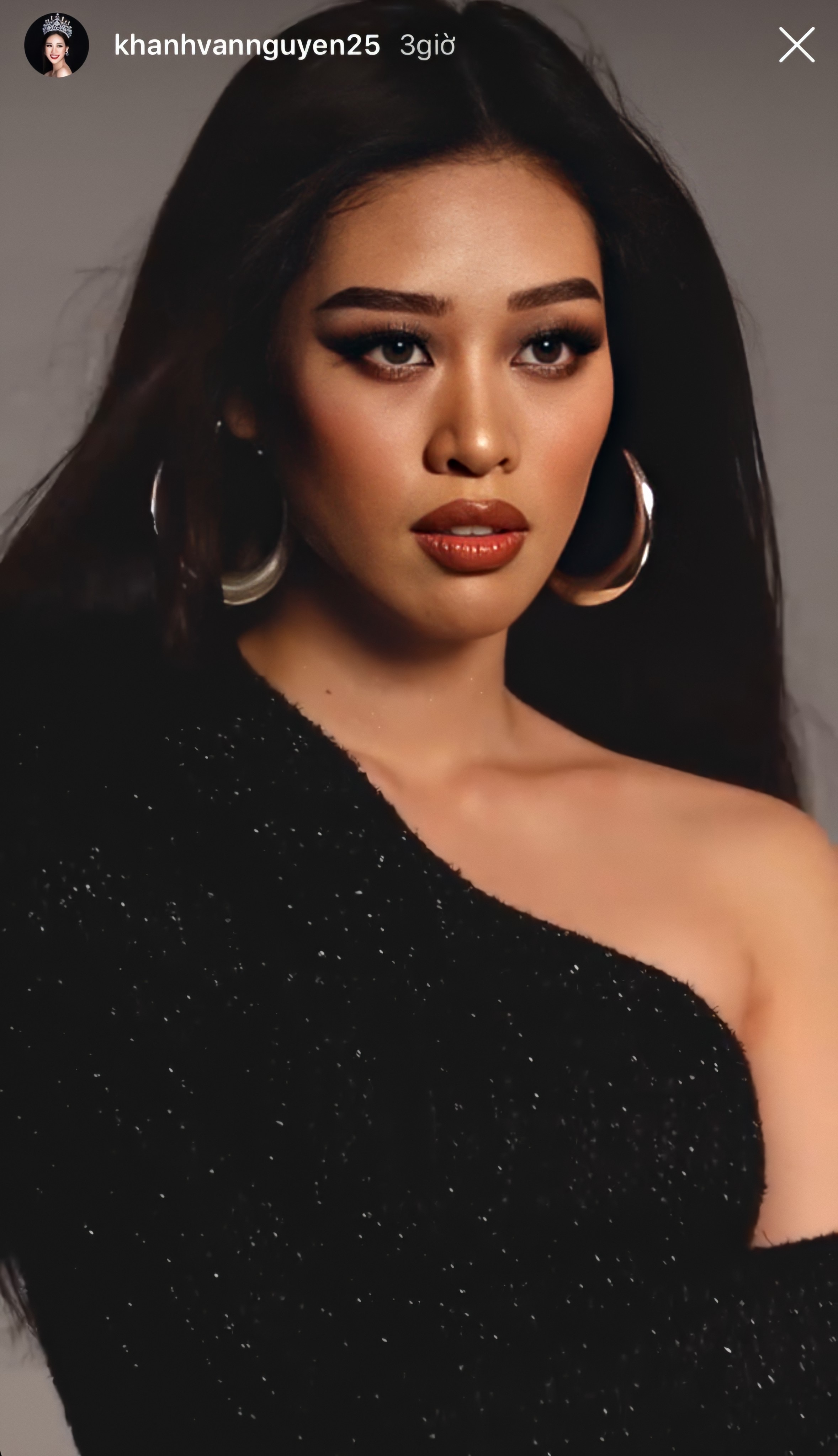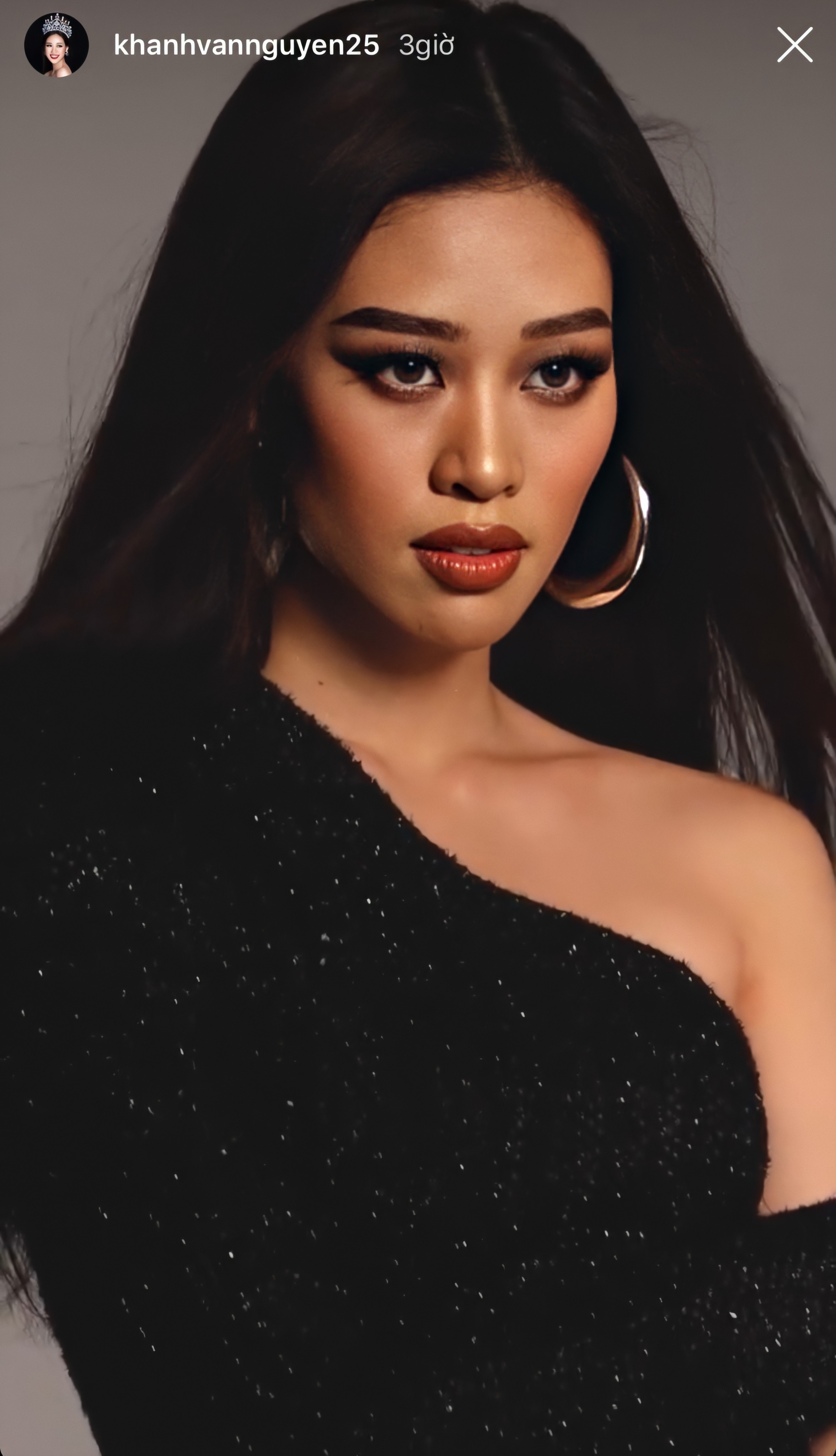 Khánh Vân khiến fan bất ngờ với diện mạo mới da nâu cùng với tóc rẽ ngôi, thể hiện thần thái sắc lạnh.