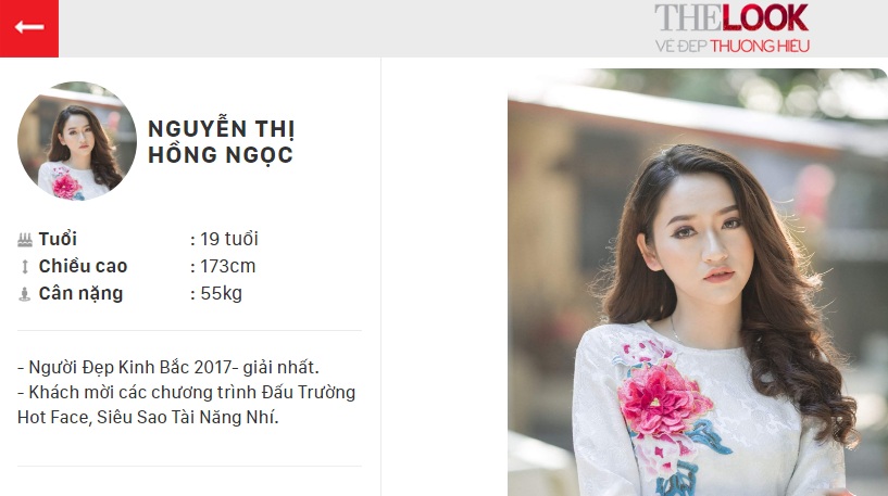 Profile dự thi của Hồng Ngọc tại The Look Online 2017.