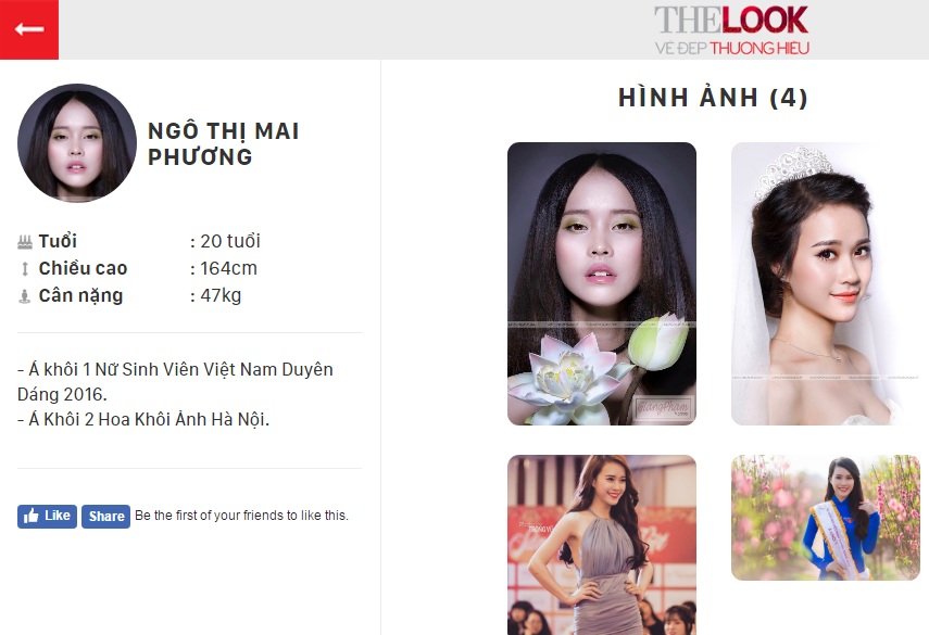 Profile dự thi của Mai Phương tại The Look Online 2017.