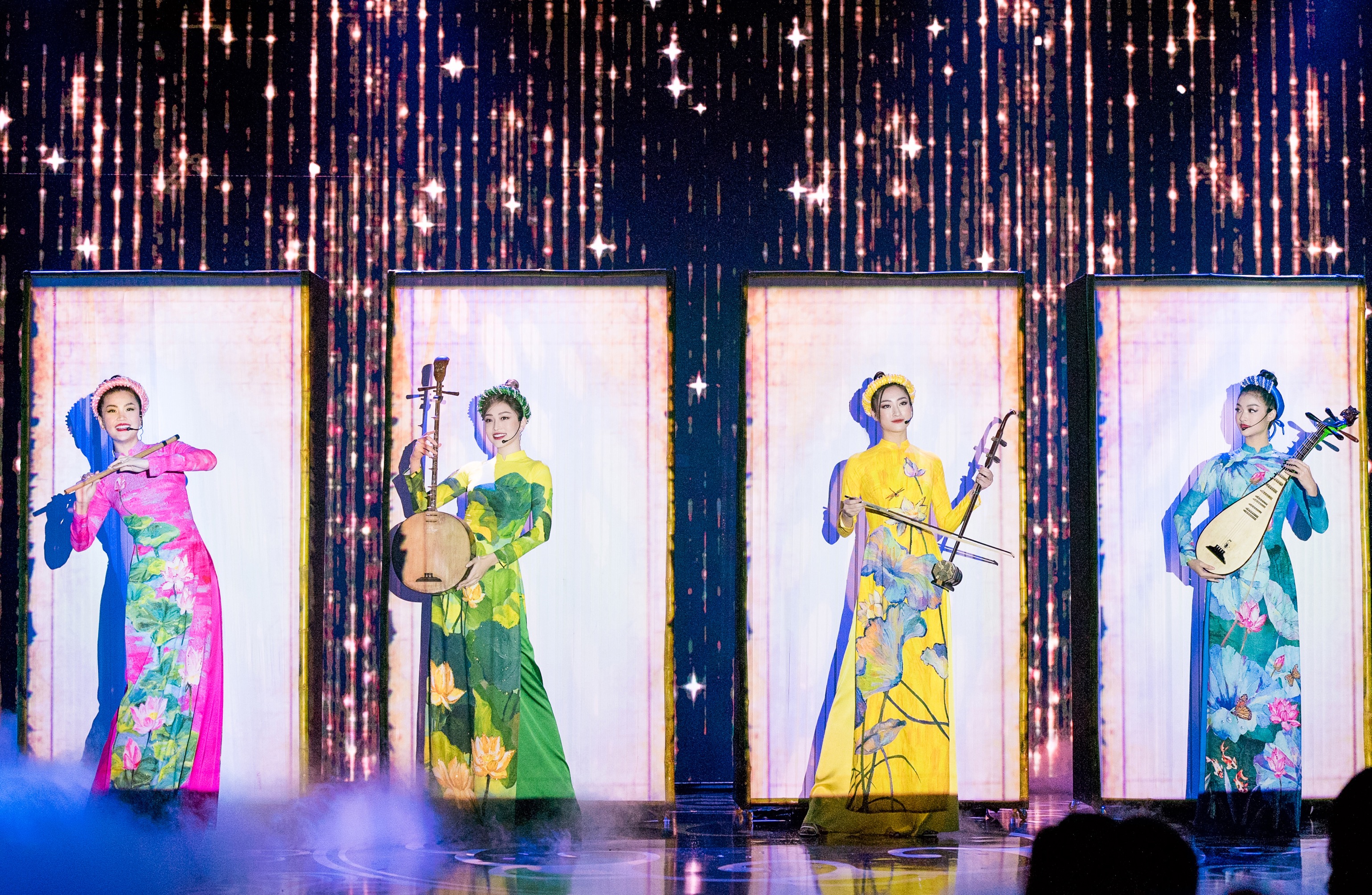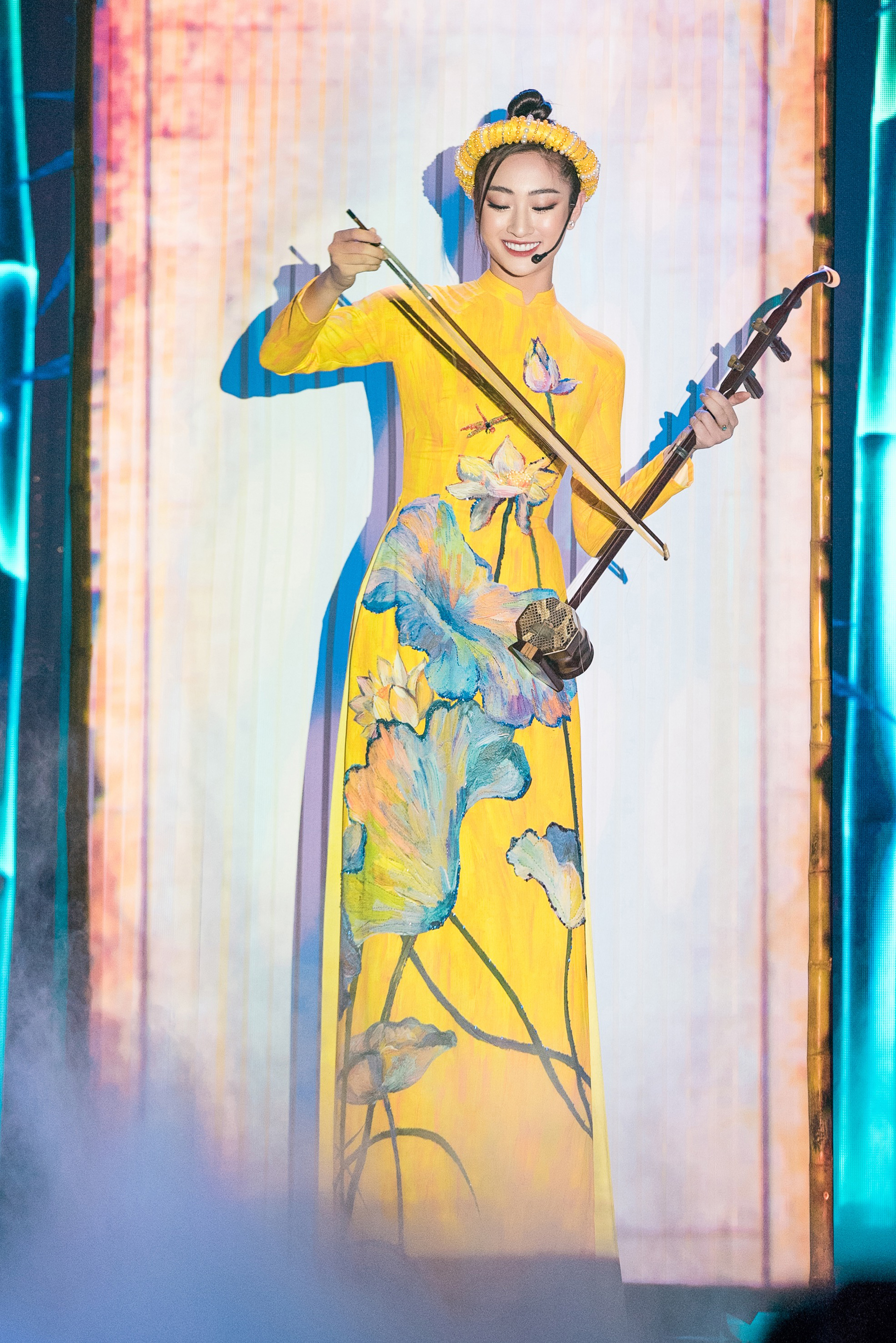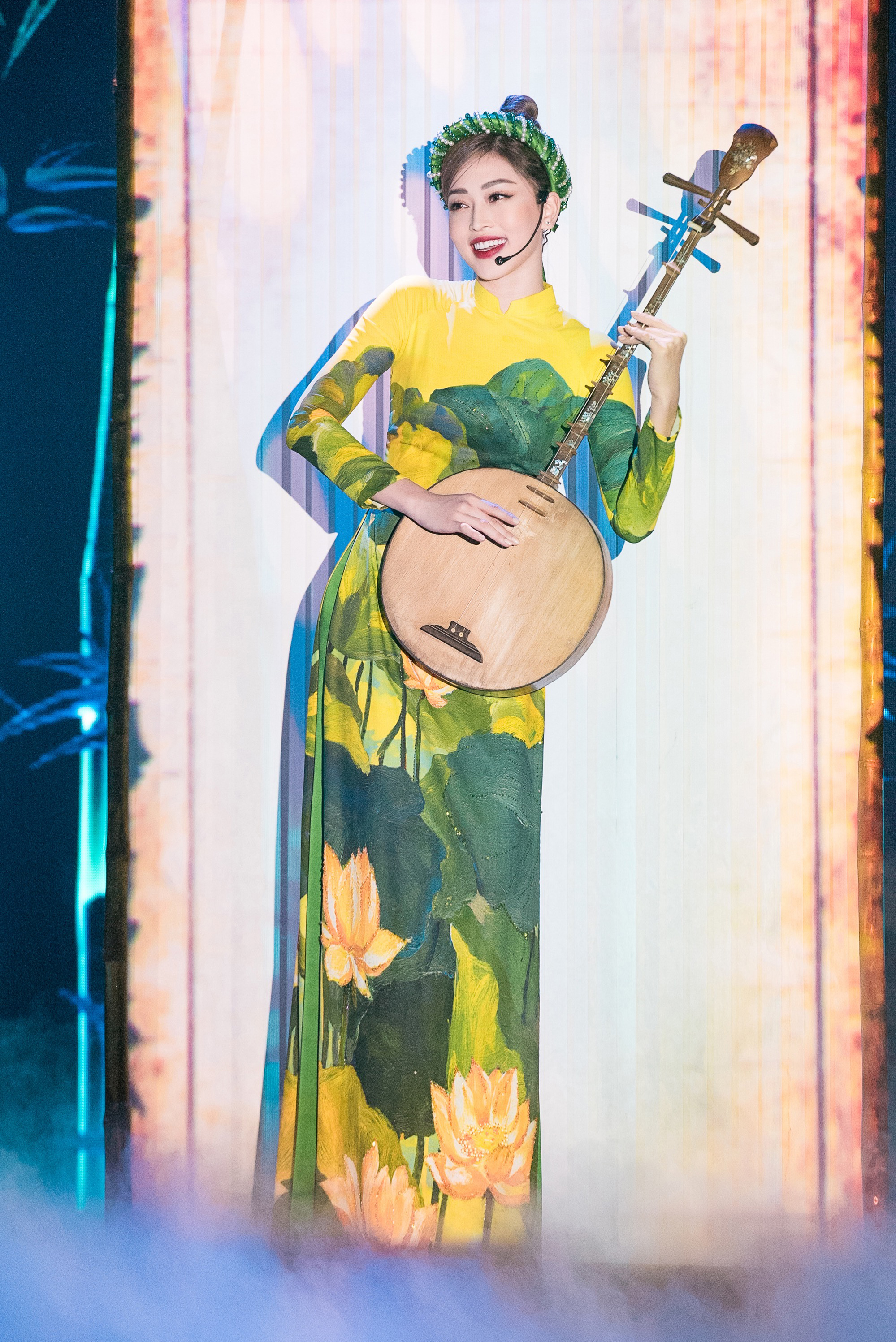 Bên cạnh những màn trình diễn catwalk duyên dáng với trang phục áo dài truyền thống, các người đẹp còn trổ tài đàn hát gây chú ý với người hâm mộ.