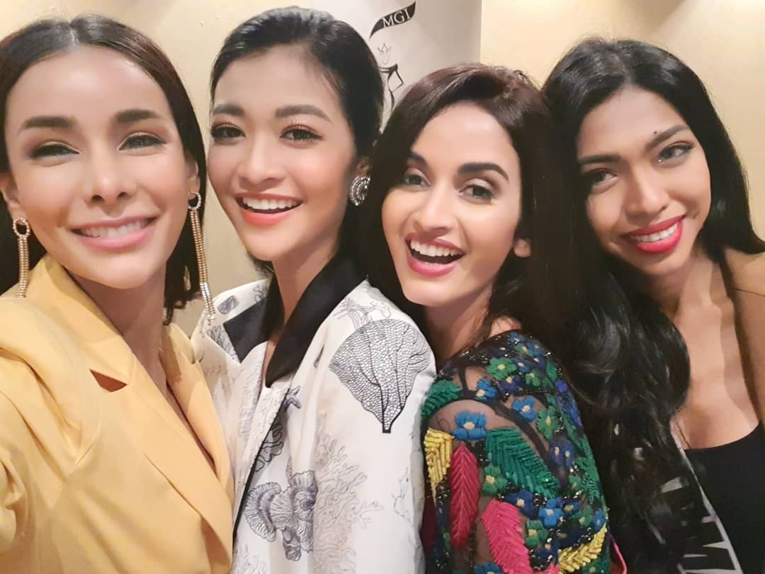 Kiều Loan và 3 đại diện đến từ Thái Lan, Myanmar và Ấn Độ khá thân thiết tại cuộc thi.