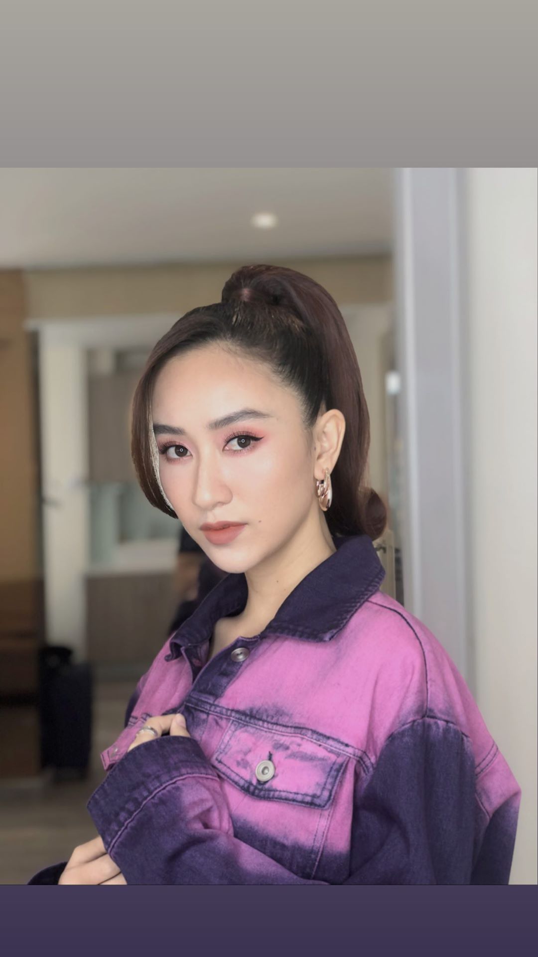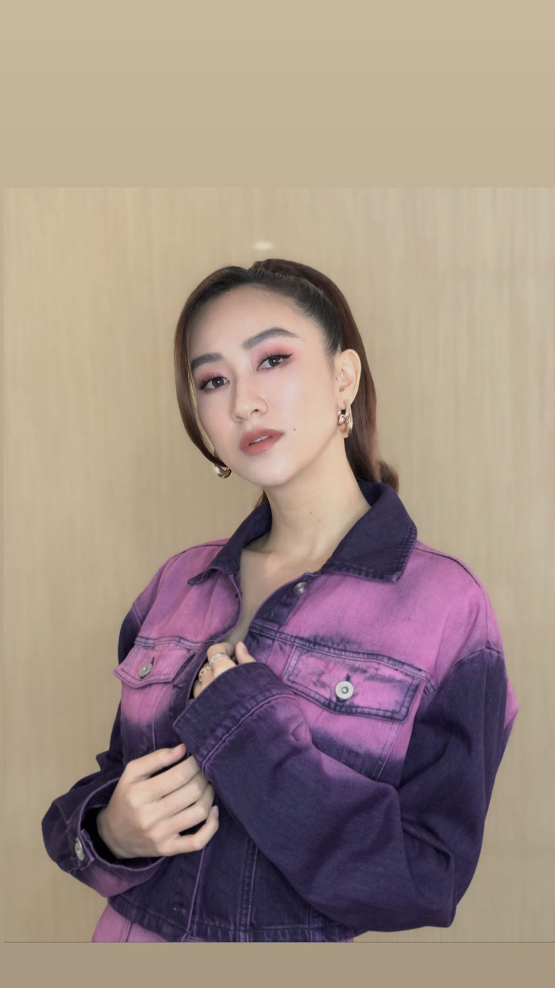 Á hậu Hà Thu diện street-style cực chất với áo jean nhuộm màu ấn tượng.