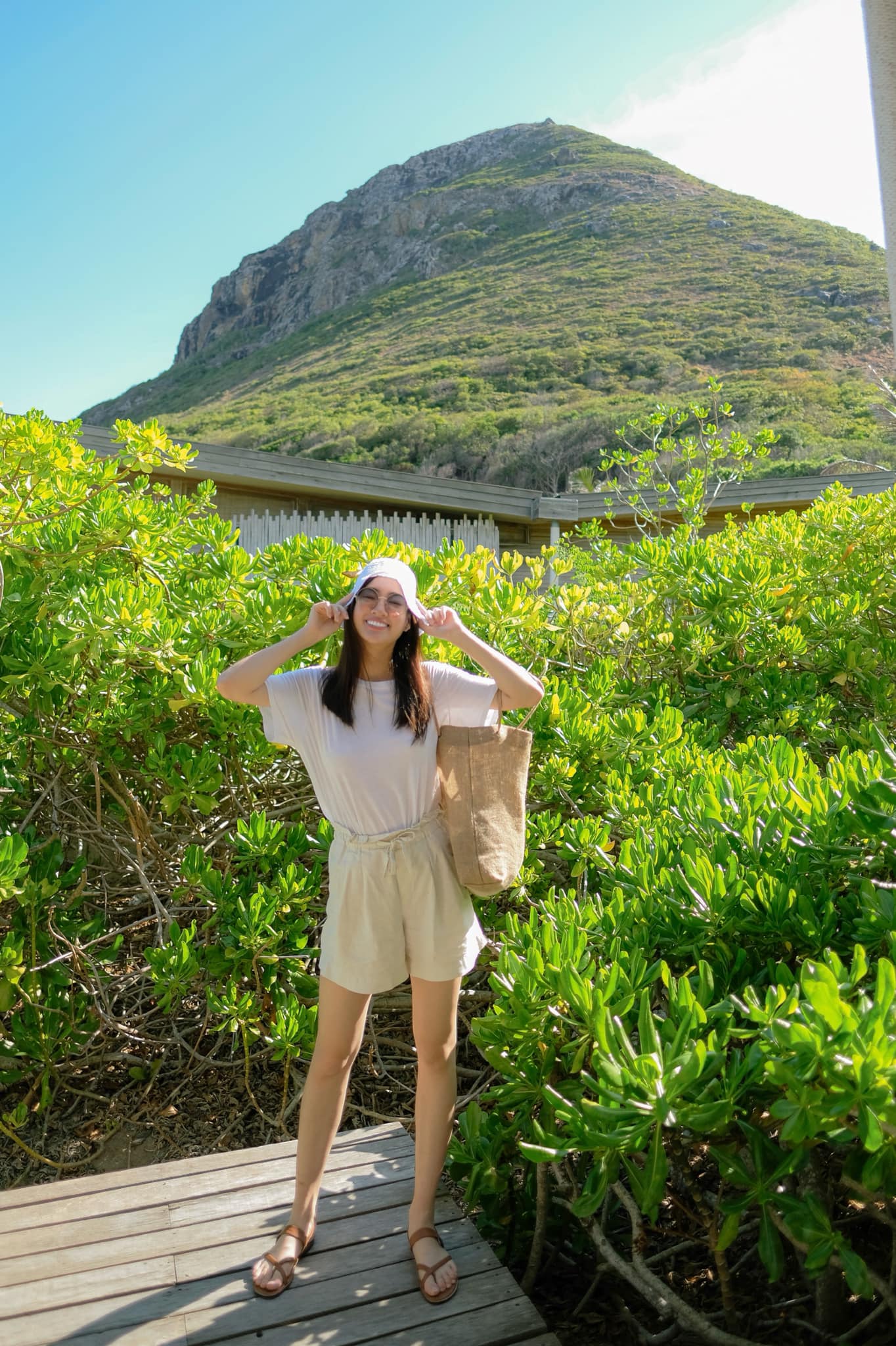 Hoa hậu Lương Thùy Linh diện style đơn giản, khoe nụ cười tươi tắn dưới nắng biển.