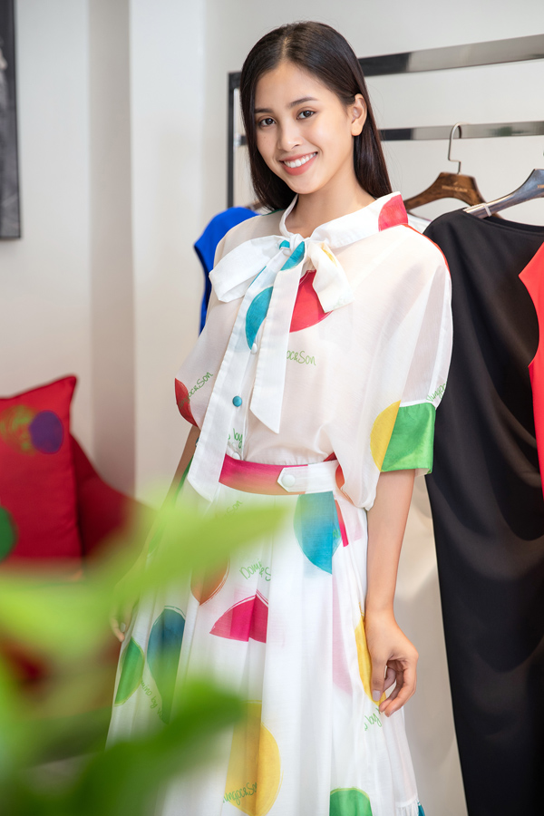 Việc mix đồ tone xuyệt tone cực cao tay của Tiểu Vy đi kèm với chiếc váy với những khoảng hở tinh tế tôn lên thần thái ngời ngời của đại diện Việt Nam.