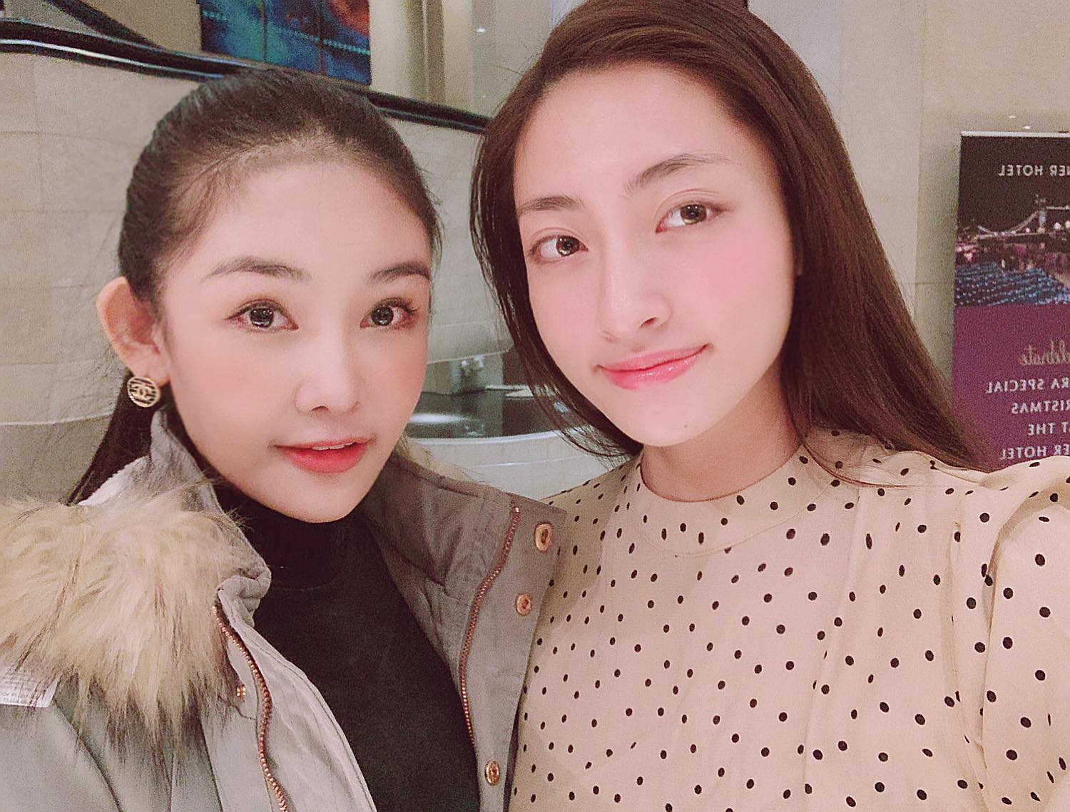 Lê Âu Ngân Anh thân thiết cùng cô em út Lương Thùy Linh tại Anh quốc.