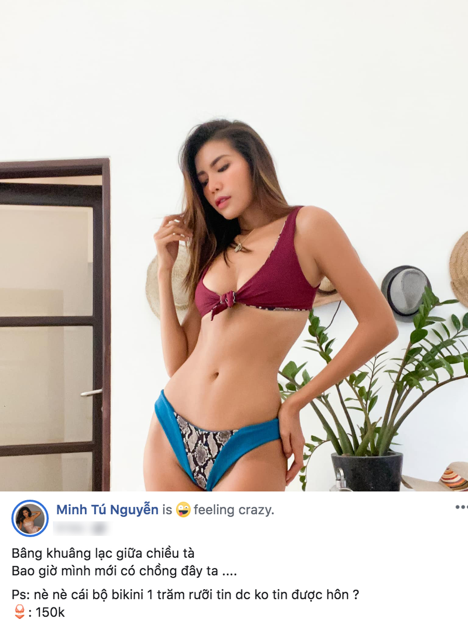 Minh Tú khoe body nóng bỏng với bộ bikini mua với giá 150.000 đồng.
