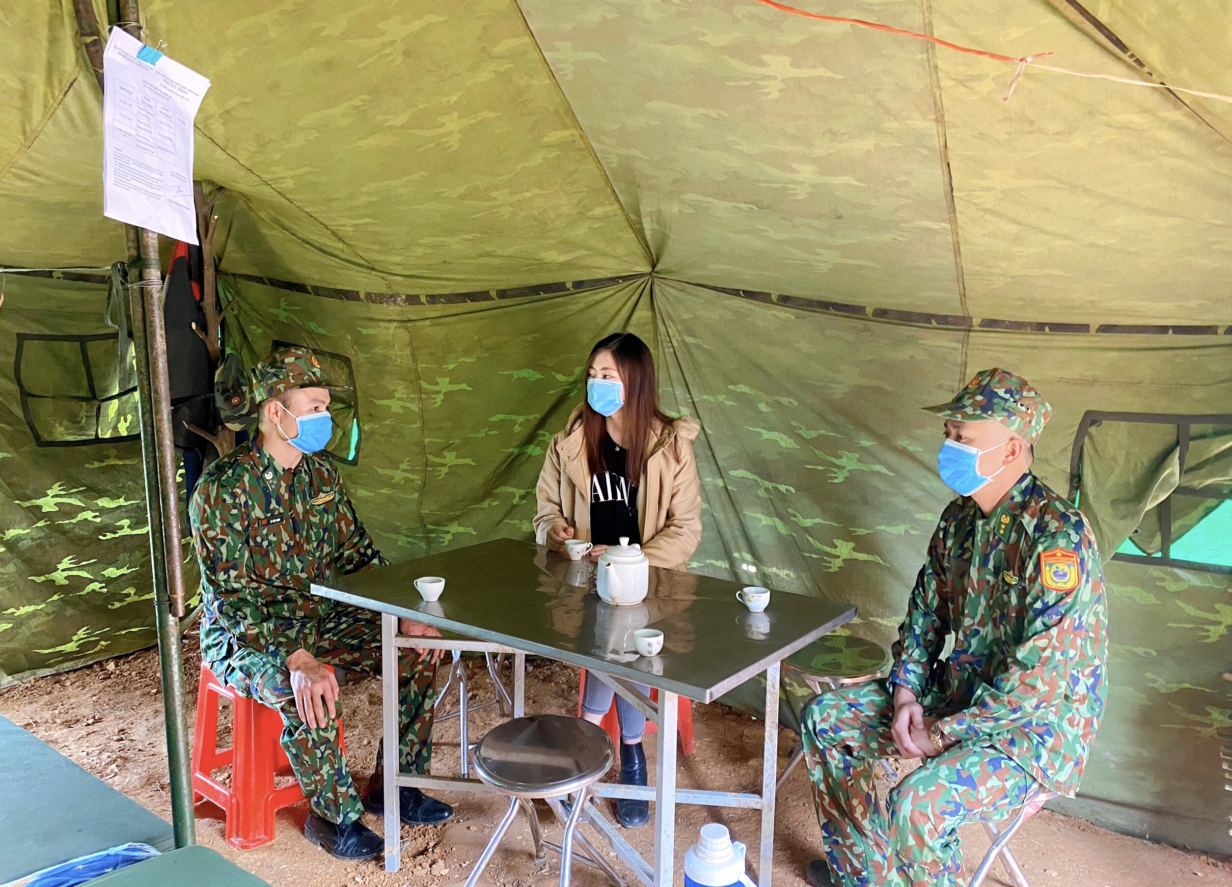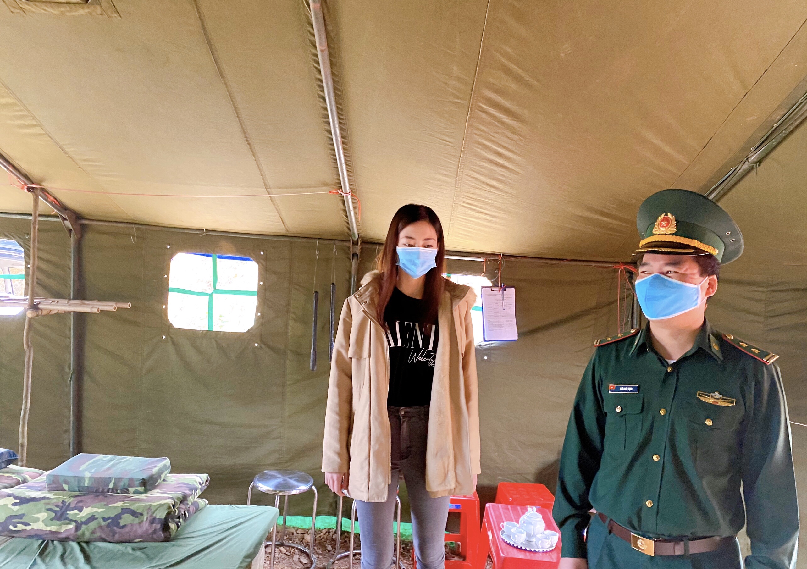 Trong lán cũng có một chiếc giường nhỏ để mọi người thay nhau nghỉ ngơi khi hết ca trực. Ngày khô thì còn đỡ, ngày mà mưa to gió lớn là các chú phải chia nhau ra giữ lều bạt lại chứ không gió thổi bay mất. Cao Bằng cũng đang vào mùa lạnh, ban đêm nhiệt độ xuống thấp, ngủ trong lán ở nơi cửa khẩu thế này sẽ rất rét” - Hoa hậu Lương Thuỳ Linh chia sẻ về những khó khăn mà các chiến sĩ bộ đội phải đối mặt khi đến thăm trực tiếp.