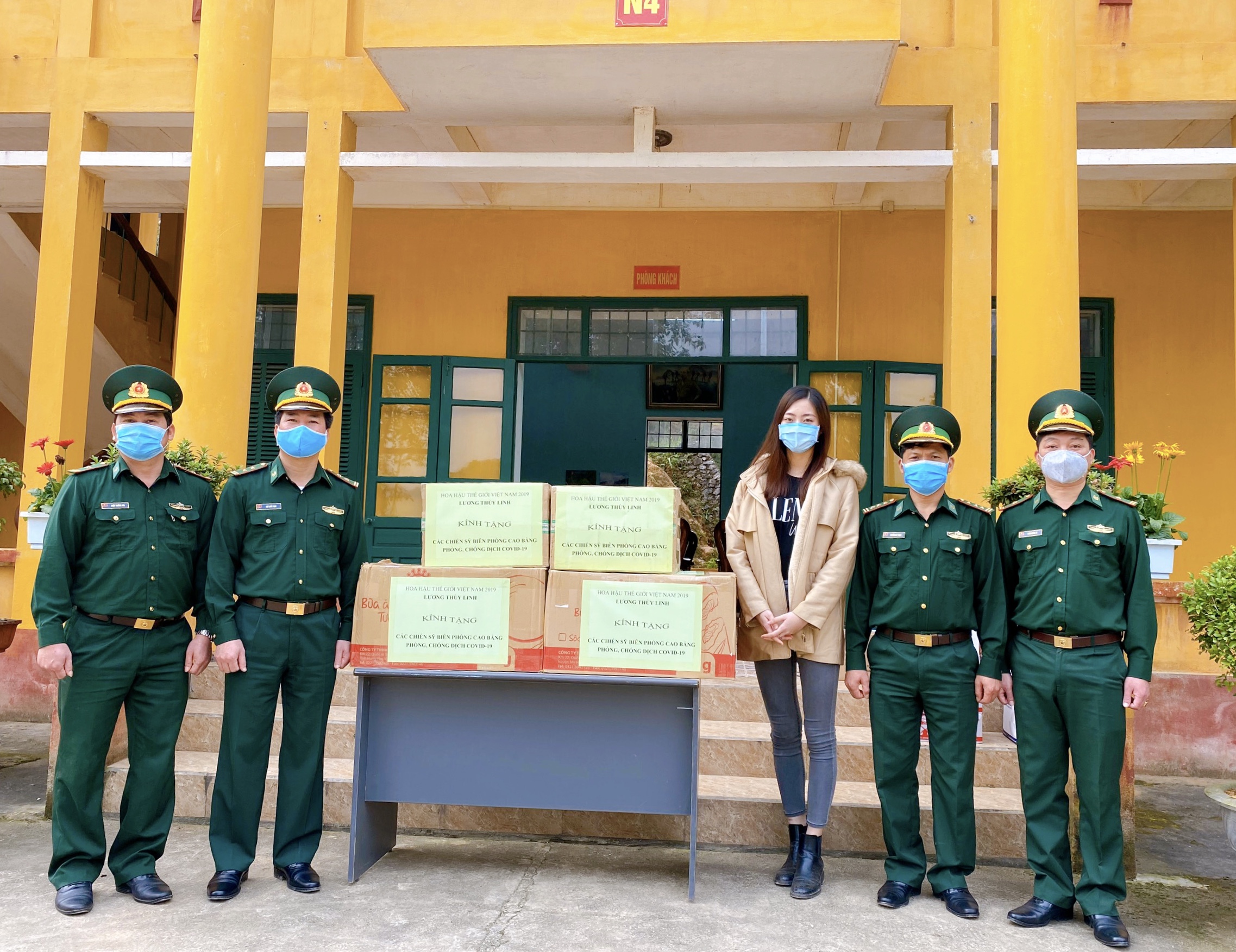 Ngày 9/4, Hoa hậu Thế giới Việt Nam 2019 - Lương Thùy Linh đến thăm, tặng quà các chiến sĩ bộ đội biên phòng đang làm nhiệm vụ phòng chống dịch COVID-19 tại Cao Bằng. Là một người con của mảnh đất Cao Bằng, trong thời gian cách ly toàn xã hội, Lương Thùy Linh đã trở về với quê hương, cách ly tại nhà cùng với gia đình. Nhận thấy được những khó khăn, vất vả của các chiến sĩ bộ đội đang ngày đêm trực biên giới để kiểm soát, phòng chống dịch, nàng hậu sinh năm 2000 đã trực tiếp đến thăm hỏi các chiến sĩ thuộc đồn biên phòng Sóc Giang.