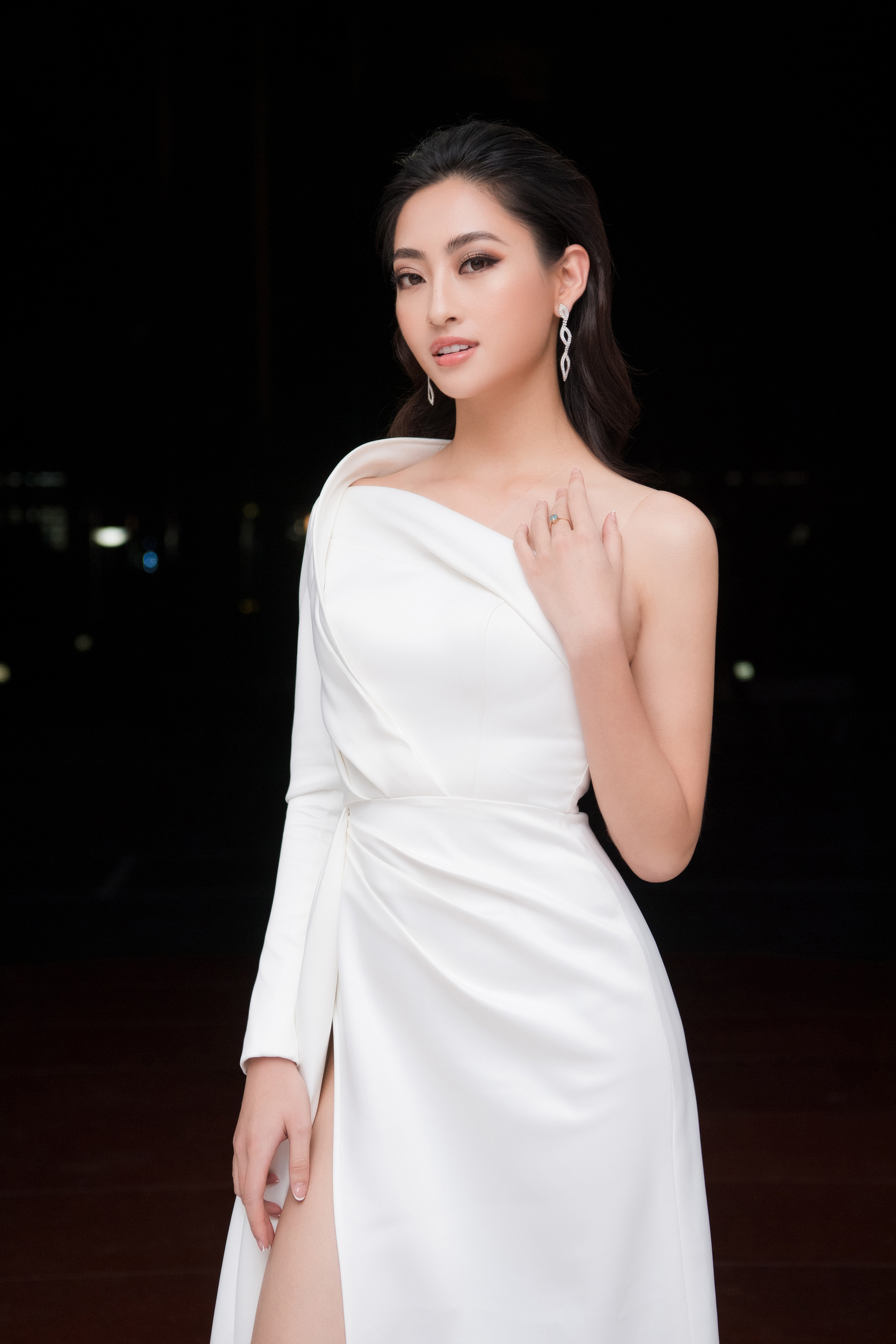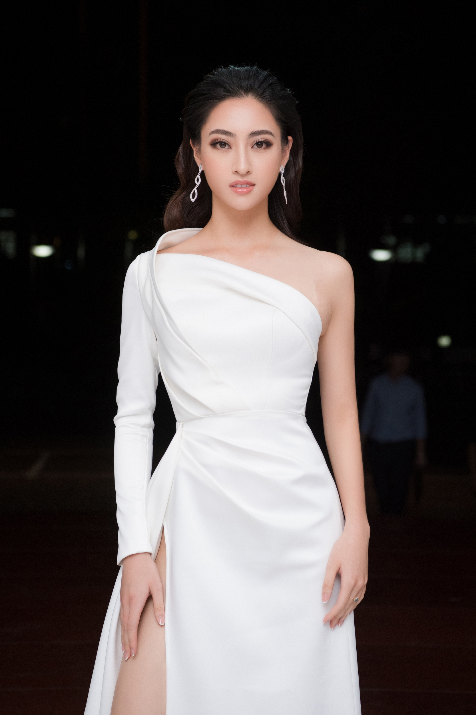 Nàng hậu gốc Cao Bằng diện bộ đầm trắng tinh khôi, có form dáng được thiết kế ấn tượng với phần vai hở, thắt eo chặt và phần váy xẻ cao giúp hoa hậu Lương Thùy Linh khoe trọn được hình thể quyến rũ và đôi chân dài 1m22. Sau gần một năm nhiệm kì, cô nàng cho khán giả thấy được sự trưởng thành về nhan sắc, không chỉ đến từ diện mạo bên ngoài mà toát lên từ thần thái sắc sảo, cuốn hút bên trong.