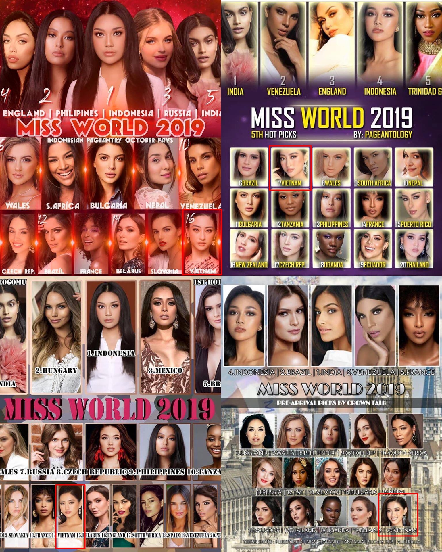 Liên tiếp lọt Top các bảng dự đoán của các fanpage ở nhiều quốc gia khác nhau, có thể thấy Lương Thuỳ Linh đang là ứng viên châu Á nổi bật tại Hoa hậu Thế giới năm nay. Người hâm mộ Việt Nam càng có nhiều hi vọng về thành tích ấn tượng của Thùy Linh ở đấu trường nhan sắc lâu đời và uy tín nhất.