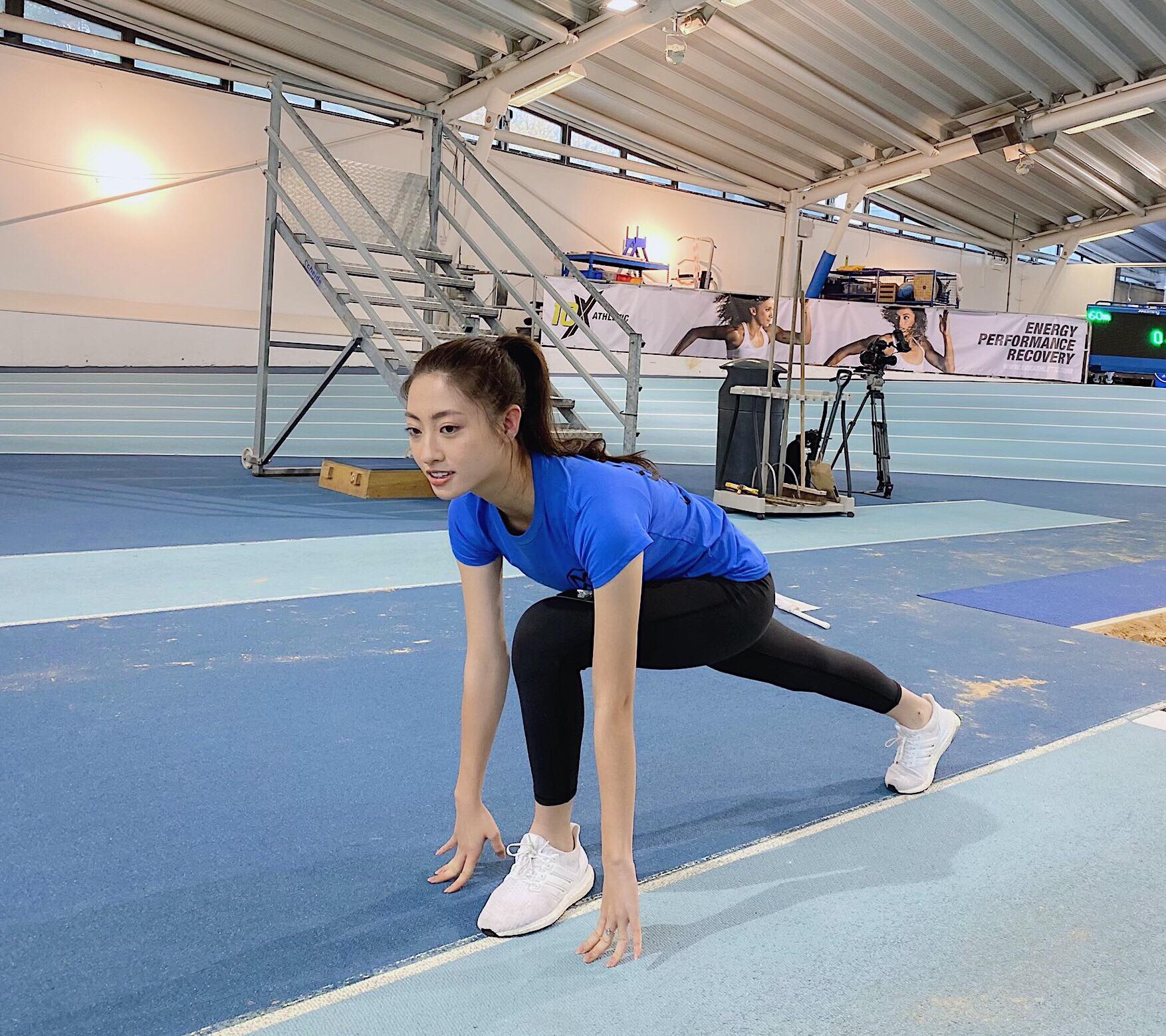Lương Thùy Linh luyện tập cho phần thi Miss Sport.