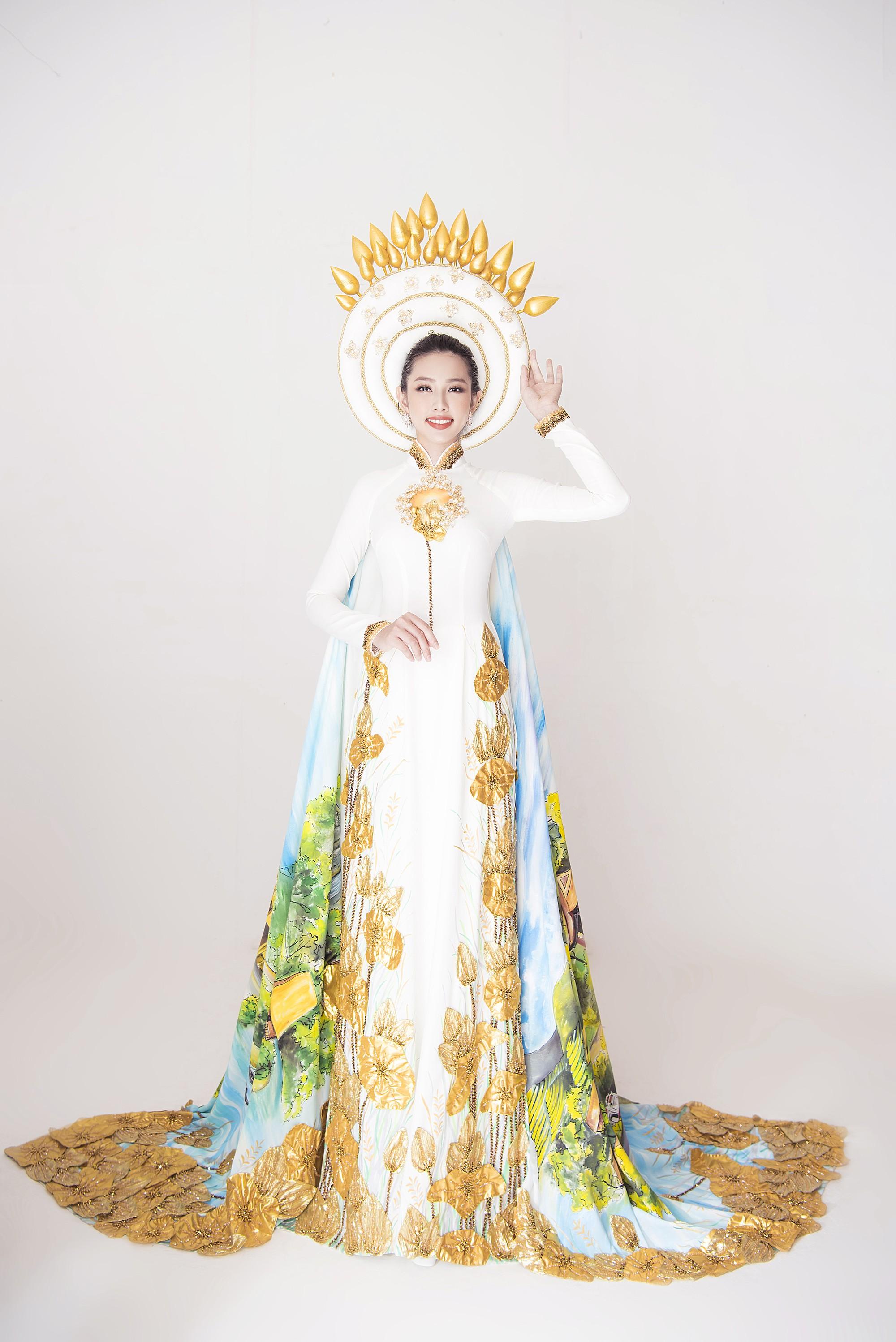 Người đẹp Thùy Tiên toát ra vẻ đẹp sang trọng, quý phái với bộ áo dài trắng tại Miss International 2018.